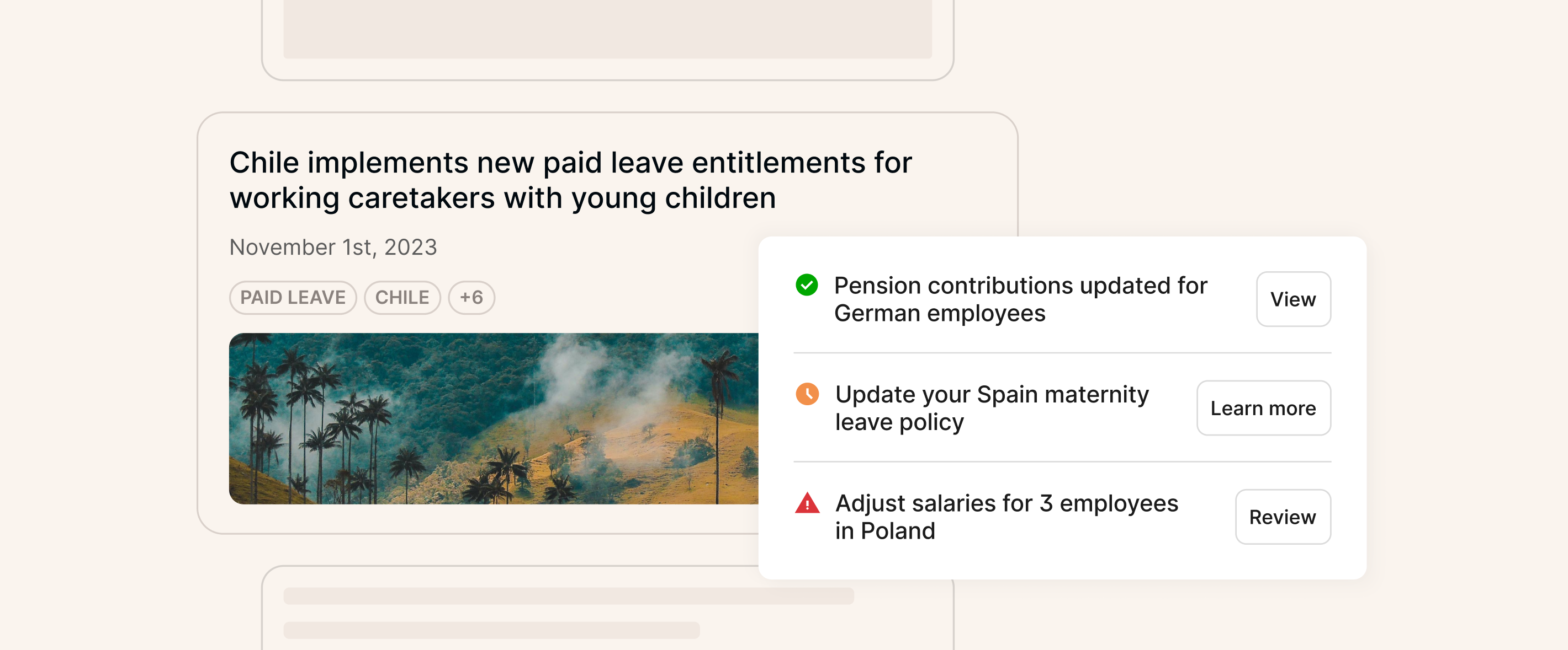 Compliance Hub indeholder blandt andet en monitor, der er udviklet til at scanne, indsamle og forklare de seneste lovgivningsmæssige ændringer globalt på områder som payroll, pension, private forsikringer, orlov og skatteforpligtelser på tværs af mere end 150 lande. Deel forenkler det juridiske sprog gennem kortfattede resuméer af de lovgivningsmæssige ændringer og formidler samtidig den påvirkning, det har på den pågældende virksomhed.