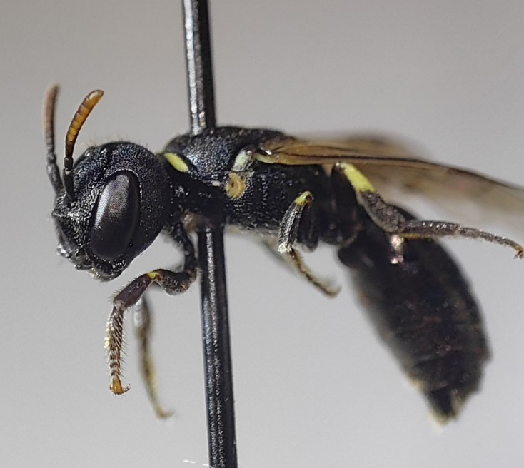 - Hornmaskebi (Hylaeus cornutus). I 1914 fandt man to hunner på Lolland, som man antog at være strejfere og man mener, ikke at arten har haft en længerevarende reproducerende bestand i Danmark.
