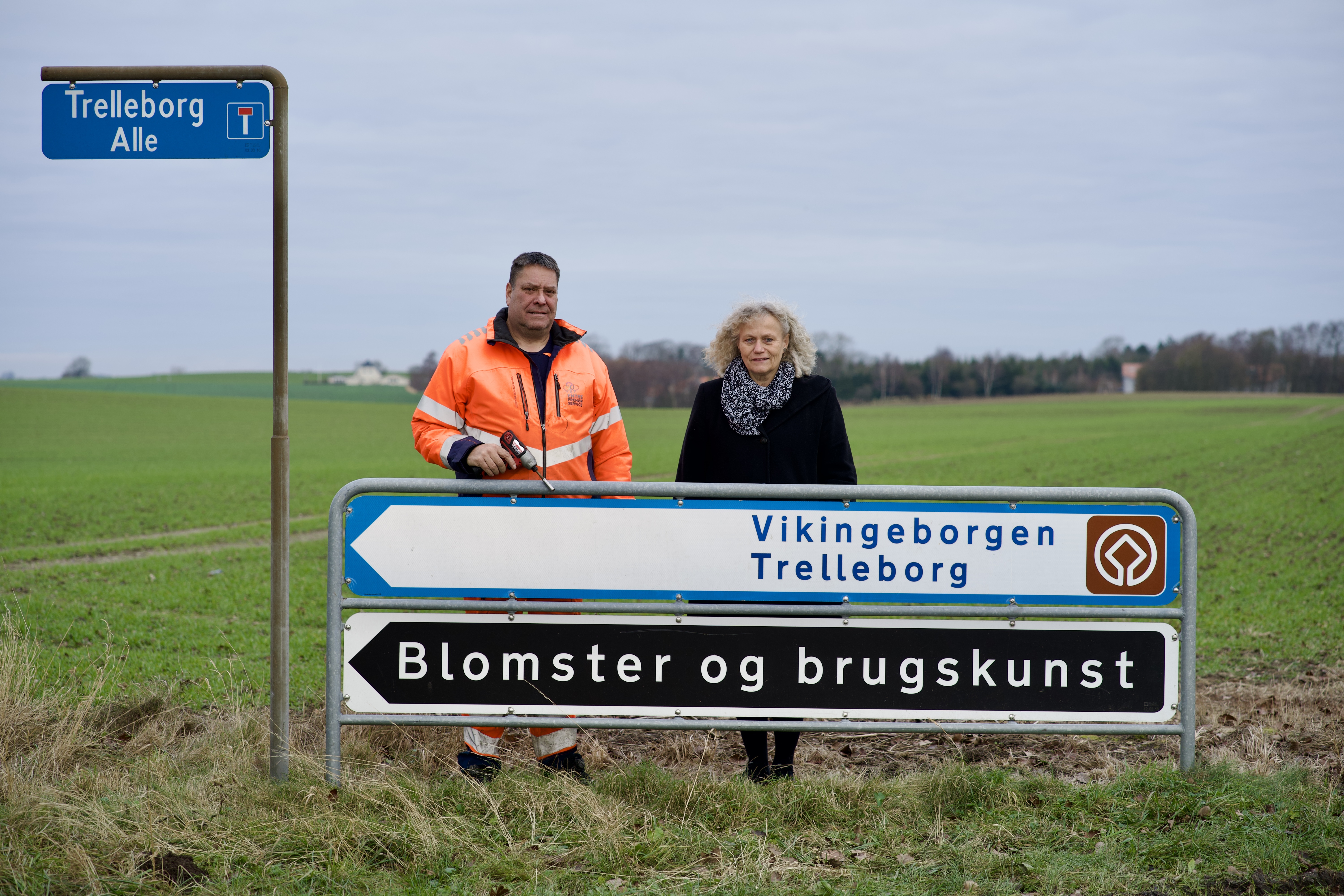 - For nogle år siden udskiftede vi alle skiltene med vejvisning til Trelleborg, da logoet dengang skulle skiftes fra lokal til national seværdighed, siger Per Kenneth Nielsen, der er teamleder i Slagelse Kommunes entreprenørservice.