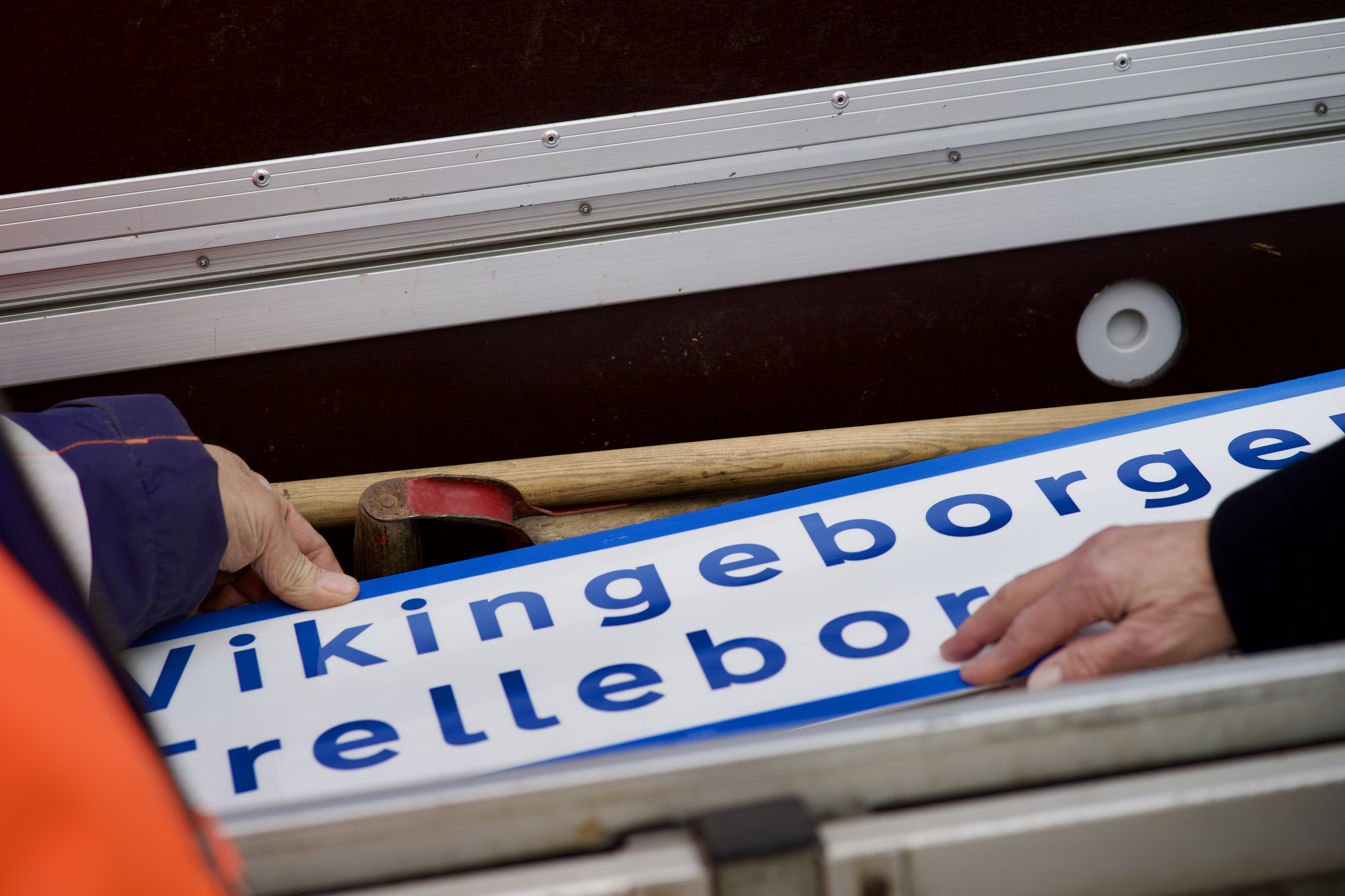 Og torsdag den 14. december et af de sidste og afgørende skilte så skiftet ud – nemlig det skilt der peger ned ad Trelleborg Allé fra Hejningevej, og som er den direkte vej tilbage til vikingernes storhedstid.