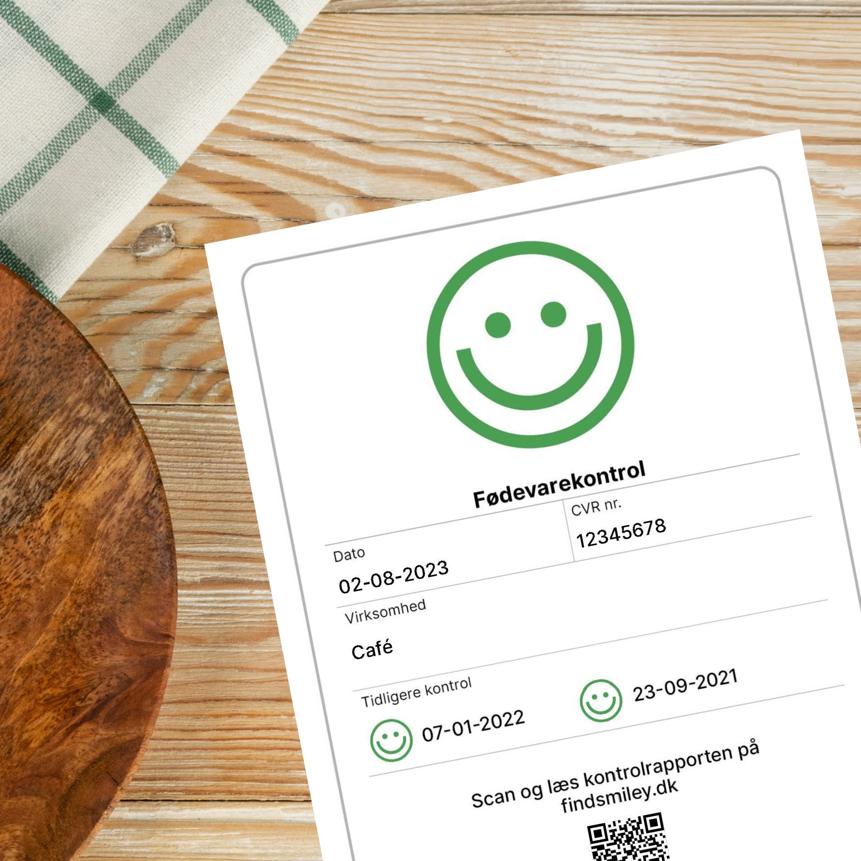 Mere end 80 procent af Danmarks knap 46.000 fødevarevirksomheder har en glad smiley, og under det – typisk – glade smil sidder der nu som noget nyt en QR-kode. Med en telefon i hånden kan café- og restaurantgæster scanne sig direkte ned i Fødevarestyrelsens seneste kontrolrapport. Her kan man læse, om virksomheden havde styr på butikken og begrundelserne for den enten sure, mellemfornøjede eller glade smiley.