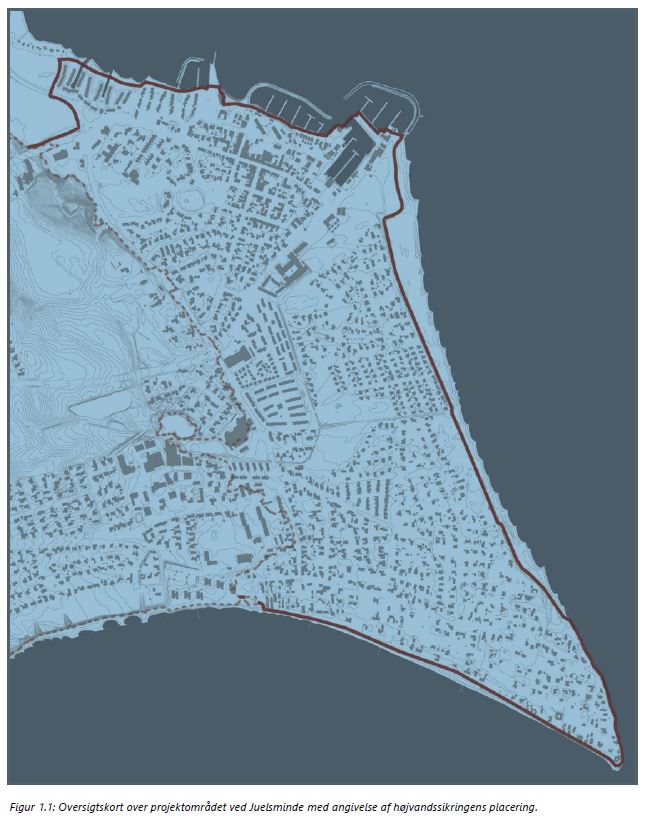 Statens pulje til kystsikring er netop blevet uddelt, og Juelsminde i Hedensted Kommune er årets helt store vinder. Næsten 38 mio. kr. er på vej til kyst- og højvandssikring i byen, der nu er kommet et afgørende skridt nærmere realisering. Ca. 1400 borgeres boliger og virksomheder vil blive sikret mod en såkaldt 100 års hændelse i 2073. Det svarer til, at der skal kunne håndteres en vandstand i kote 2,25 m. Projektet forventes færdigt i 2028.