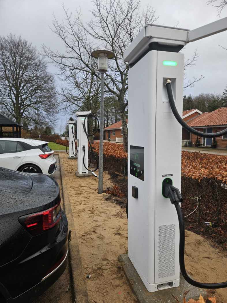 Hver lynladestander har en effekt på op mod 480 kW. Det betyder, at hvert ladepunkt har en effekt på op mod 240 kW, som kan lade op til 80 procent på kort tid.