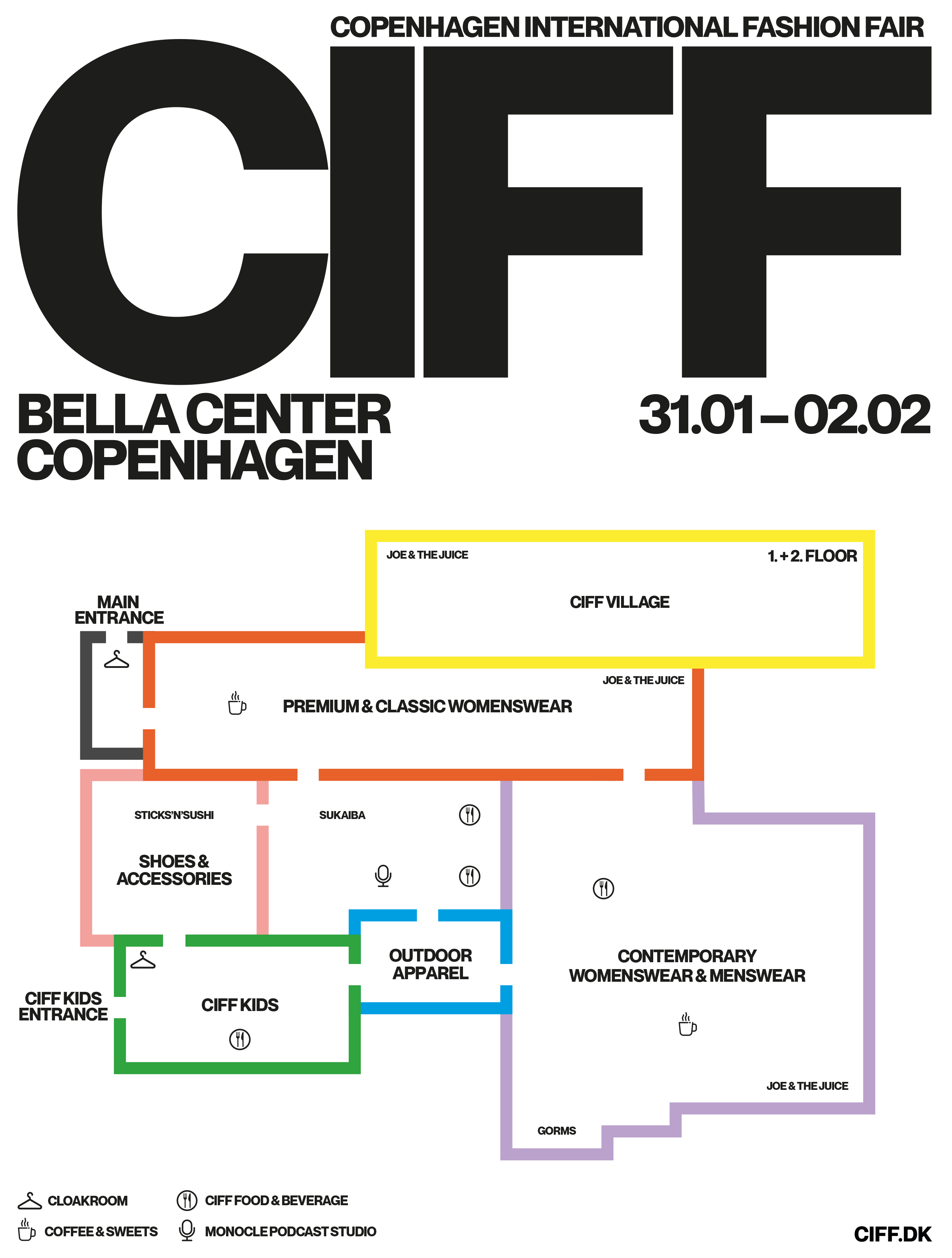 Inspireret af storbyens pulserende netværk af farvede metrolinjer og urbane samlingspunkter er et helt nyt show-layout med titlen ”CIFF City” blevet udviklet i samarbejde med frontløberne fra Darling Creative Studio. Den nye identitet og wayfinding skal ikke blot gøre besøgsoplevelsen mere intuitiv, men samtidig fungere som en serie af inspirerende bindeled mellem mode, skønhed, livsstil, underholdning, mad og musik.