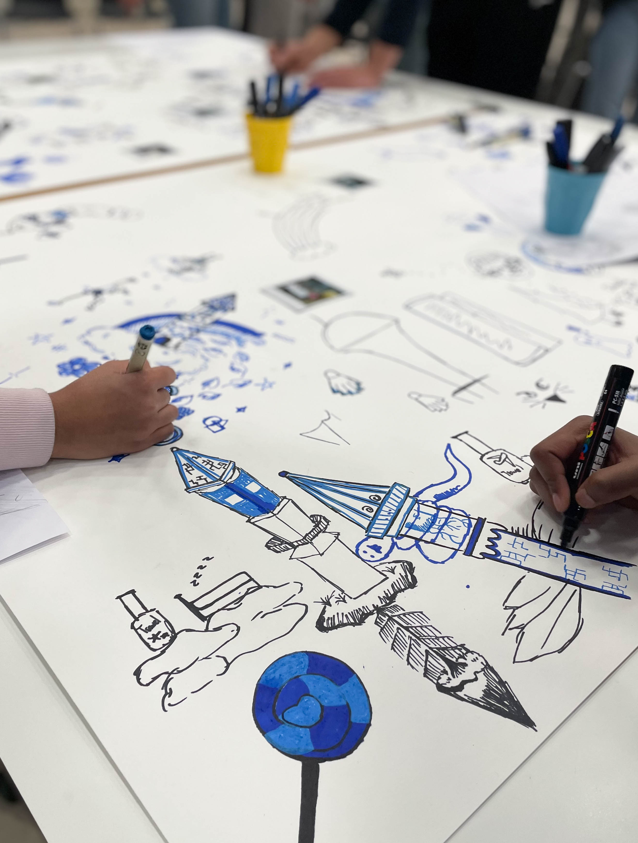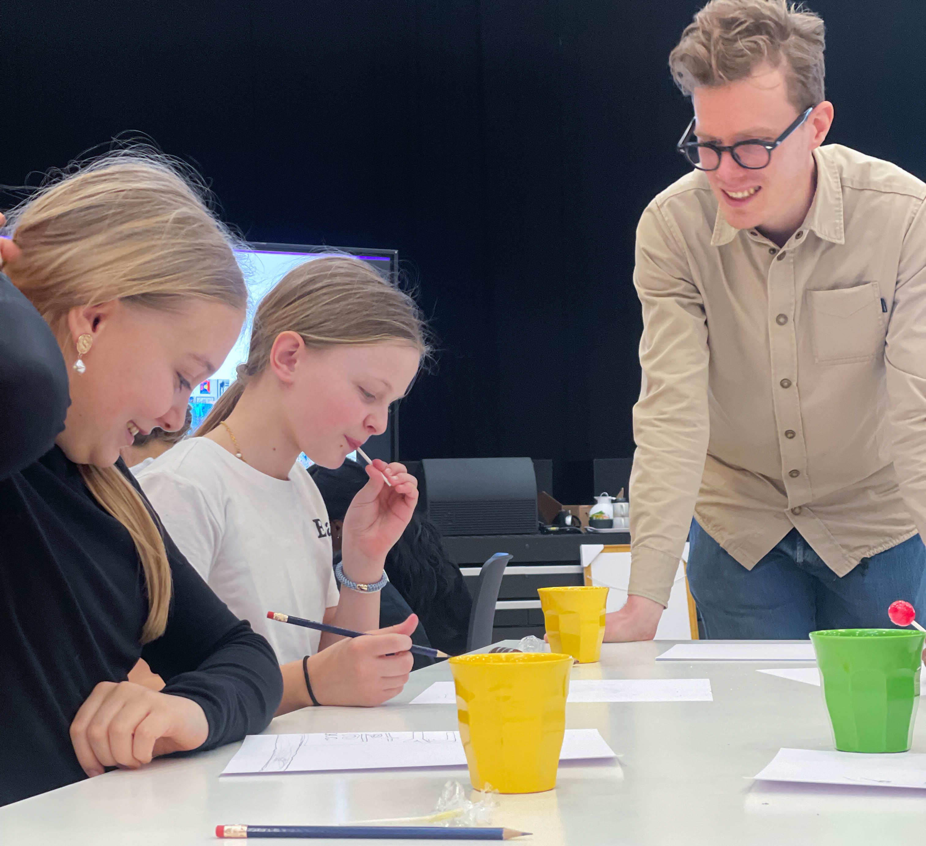 I går afholdte Kristian Djurhuus workshop med omkring 50 kreative børn fra den internationale skole i Billund og Billedskolen Billund. For kunstværket skal også afspejle DNA’en i Billund – det gode børneliv.