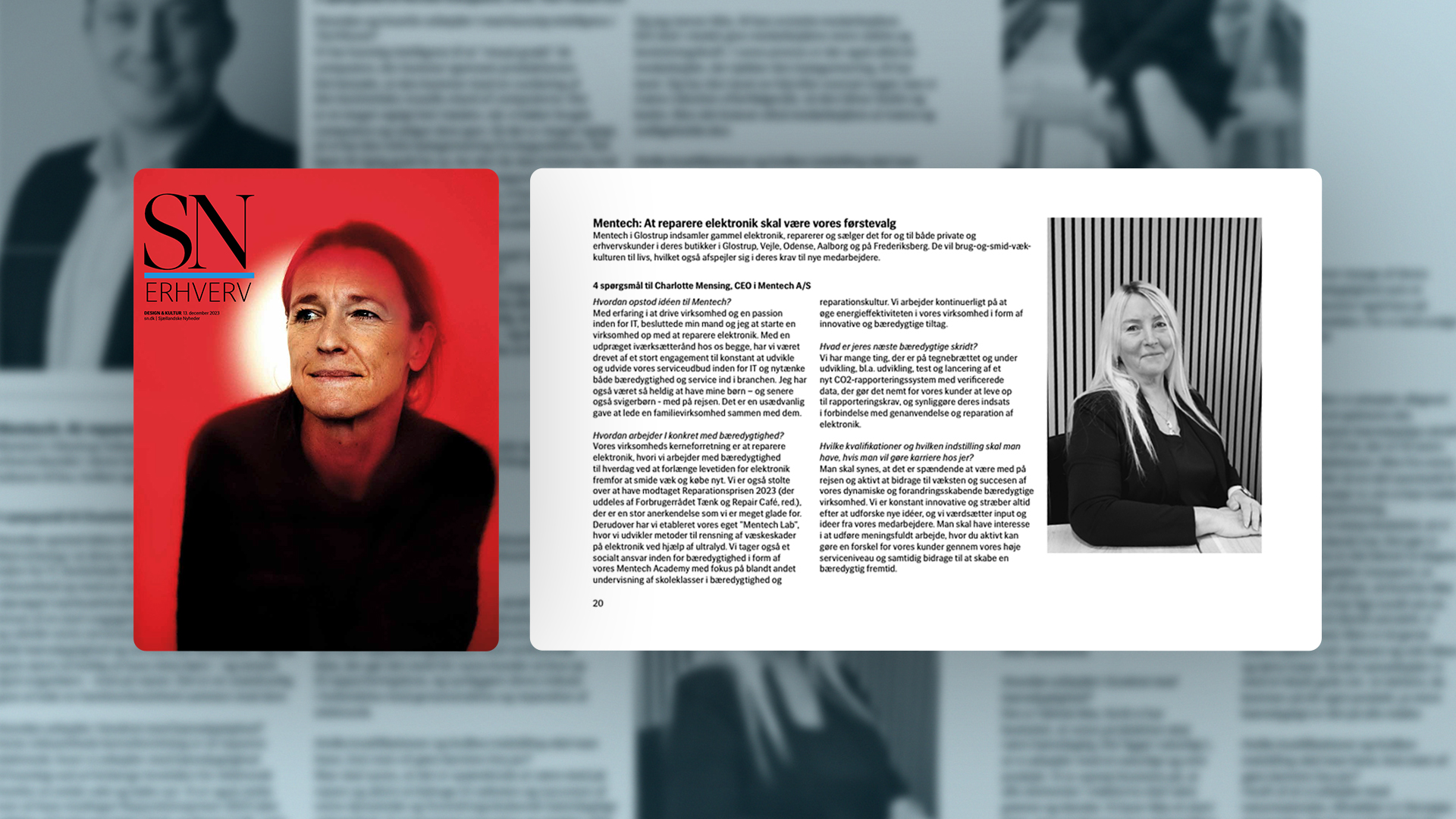 Administrerende direktør Charlotte Mensing fra Mentech deltok tilbake i desember i et intervju utført av Sjællandske mediers næringslivsmagasin. Her var hun en av fire ulike tilfeller som skulle gi sitt bidrag angående forventningene til fremtidige ansatte til kunstig intelligens (AI) og den grønne omstilling. Charlotte Mensing uttalte seg om Mentechs store oppdrag med å forlenge levetiden til forbrukerelektronikk.