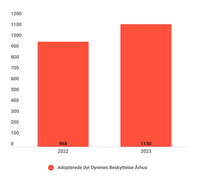 Dyreinternatet formidlede flest katte, men også mange kaniner og hunde. I 2023 fik 864 katte, 72 hunde, 89 kaniner og 97 mindre dyr som marsvin, fugle og hamstere nye gode hjem fra internatet i Århus.