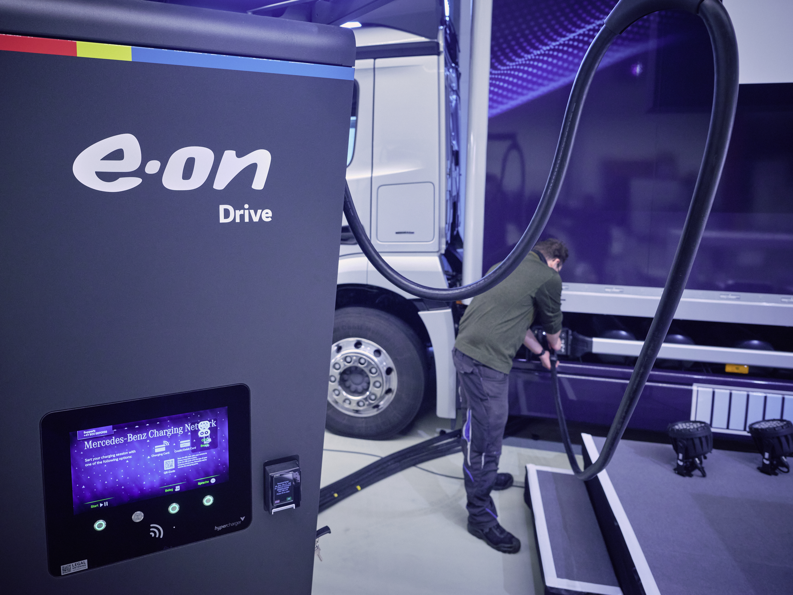 Når E.ON sætter ladestandere op, er der ikke kun fokus på placering og ladeeffekt, men også på udvikling af ladesystemer og at sikkerheden er i top. I Tyskland har E.ON netop åbnet et nyt test- og innovationscenter, der har kapacitet til at teste fremtidens lastbil-ladere med en effekt på helt op til 3 megawatt.