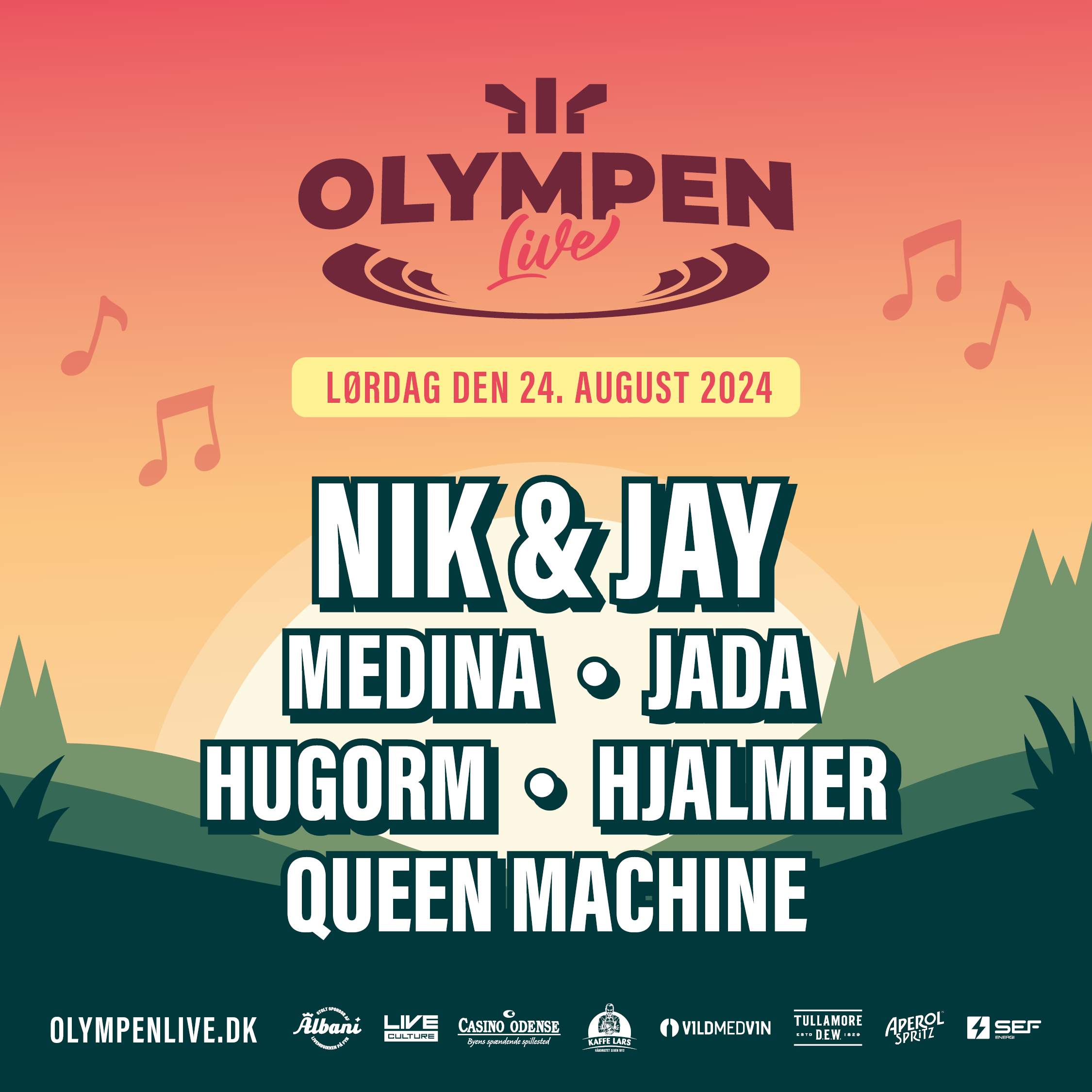Et helstøbt musikprogram er nu på plads, og programmet (be)viser at Olympen Live gerne vil være en del af den musikalske superliga. På plakaten er: Nik & Jay, Medina, Jada, HUGORM, Hjalmer og Queen Machine.