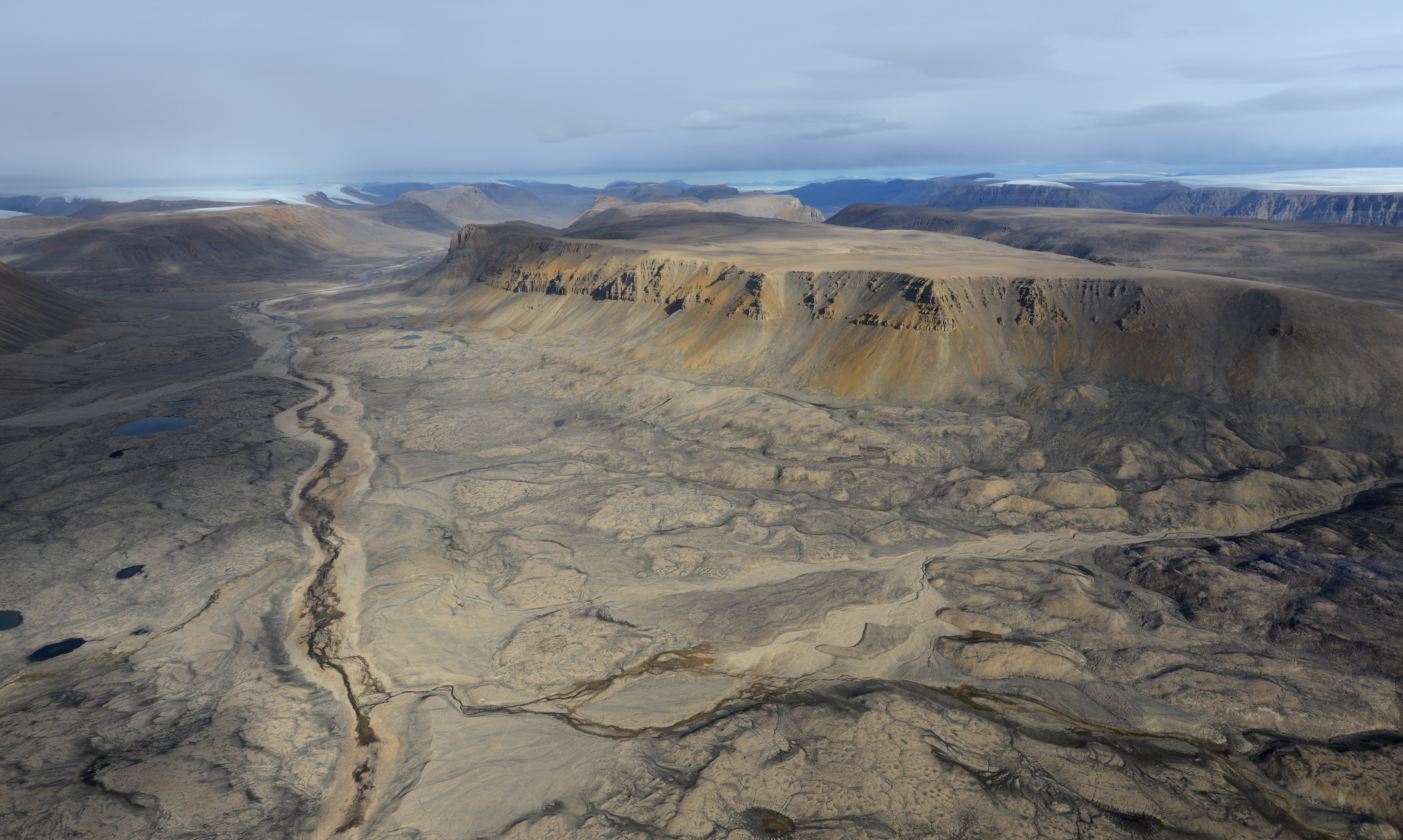 The ice-free area of Greenland is dominated by dry tundra, and here in North Greenland, consists of dry landscapes where there is hardly any vegetation. Sample measurements from this region indicate that this is where the largest uptake of atmospheric methane occurs in Greenland. Photo: Bo Elberling