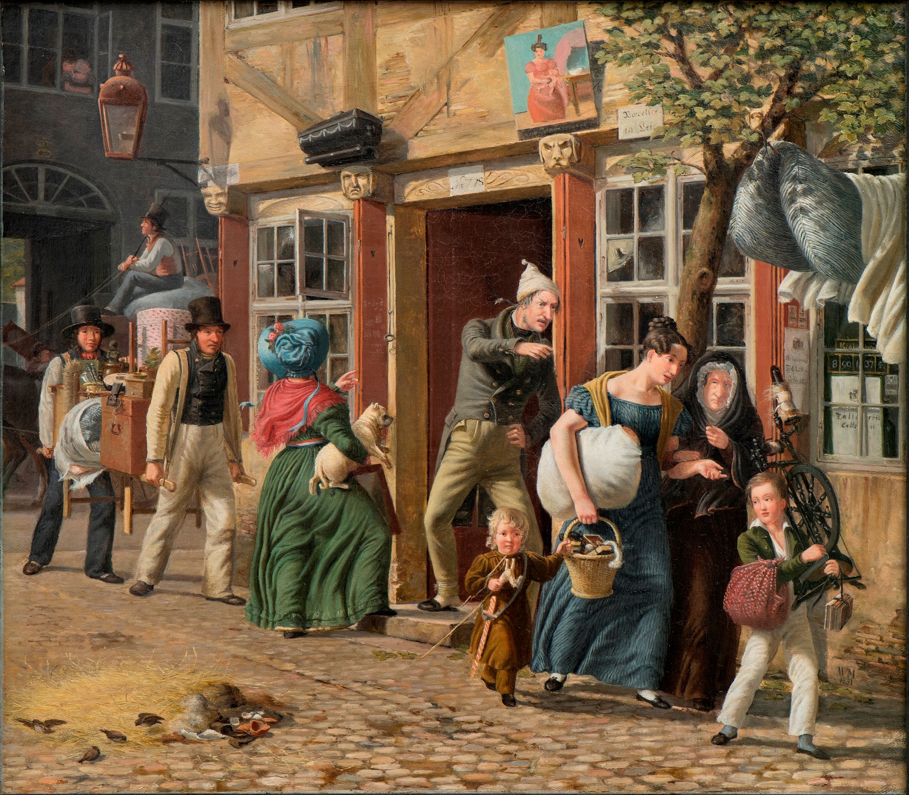 Mængden af malerier eksploderer nærmest i 1600-tallets Holland og spreder sig over den vestlige verden, også til Danmark, hvor motiverne ligger på nethinden som en væsentlig del af den kunst, der former sig op til og i løbet af den danske guldalder. Her begynder kunstnerne først i 1800-tallet at male den nære verden omkring dem: København inden for voldene, borgerskabets stuer og de travle folk i det offentlige byrum, kunstnerne selv, deres venner, kunder og familier.