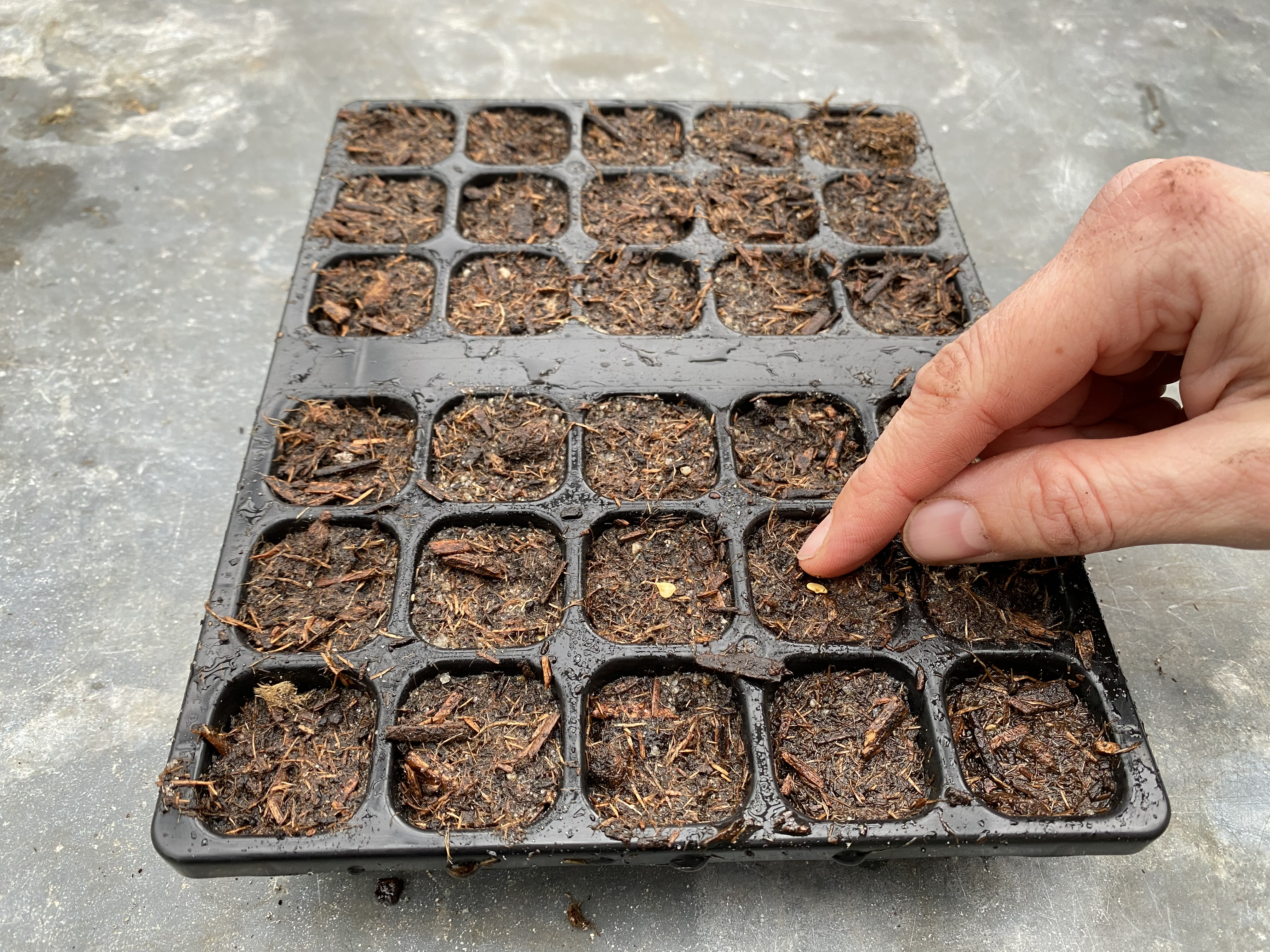 Når man sår så tidligt, er det en god idé at så i et begrænset område, der kan dækkes med net, så fugle og katte ikke kommer og forstyrrer frøene.