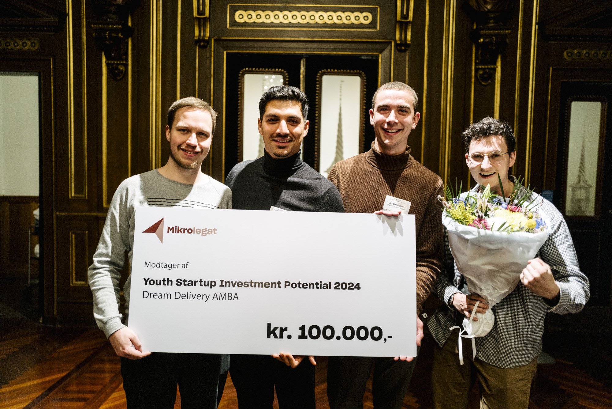 Yderligere modtog Dream Delivery og deres idé om en samarbejdsvillig madleveringsservice også et legat på 100.000 kroner fra Fonden for Entreprenørskab, hvor administrerende direktør Christian Vintergaard overrakte checken til CEO, Malte Mathies Løcke, CTO, Jacob Olesen, COO, Ferdaus Safi og Lead Frontend Developer, Mads Conrad Strei.