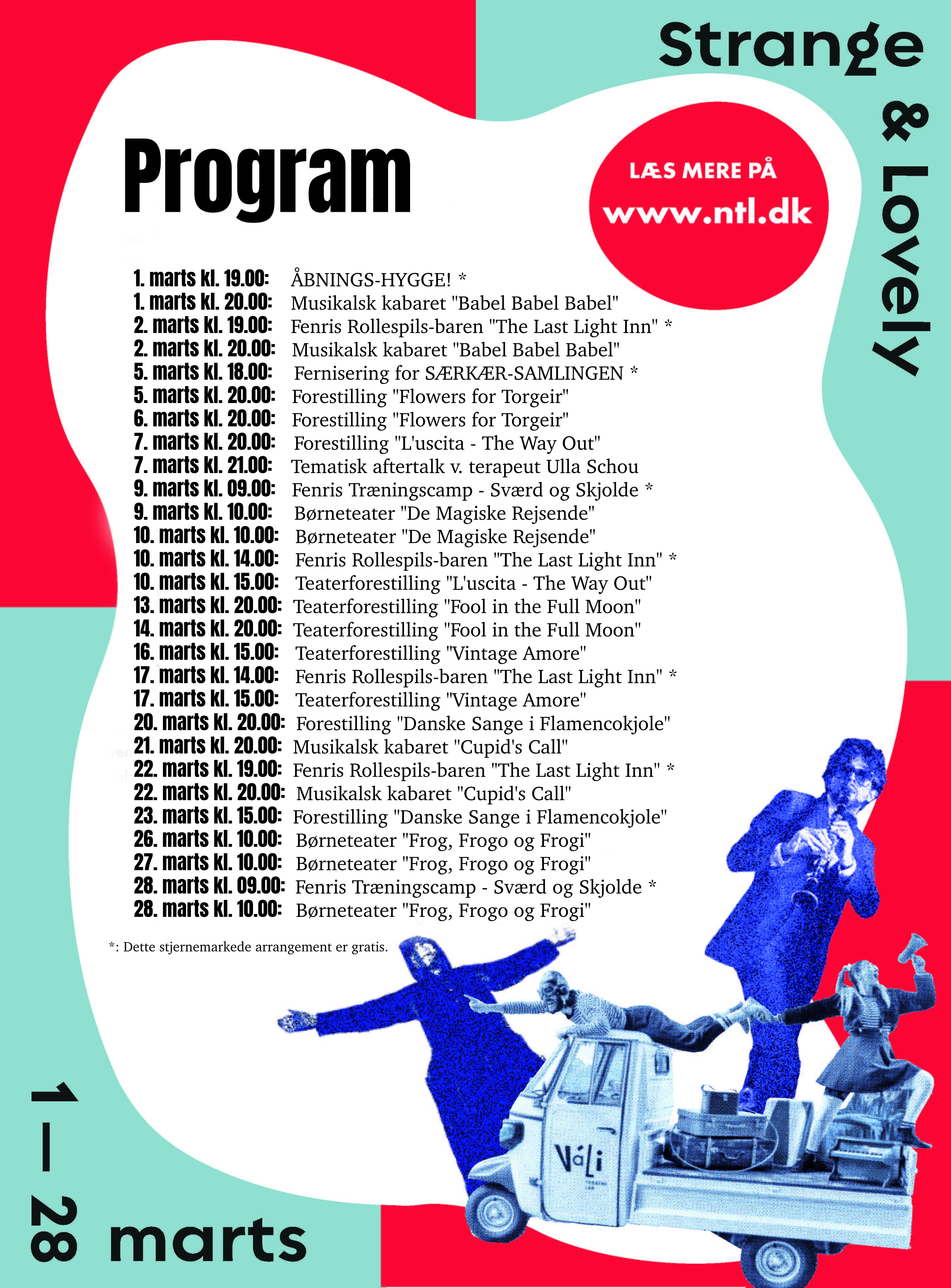Igennem hele marts måned afholder Nordisk Teaterlaboratorium en kultur- og teaterfestival, der er etableret i et tværfagligt samarbejde med andre lokale aktører i Holstebro. Konceptet hedder Strange & Lovely, hvilket er et lille ordspil på teatrets adresse, Særkærparken.