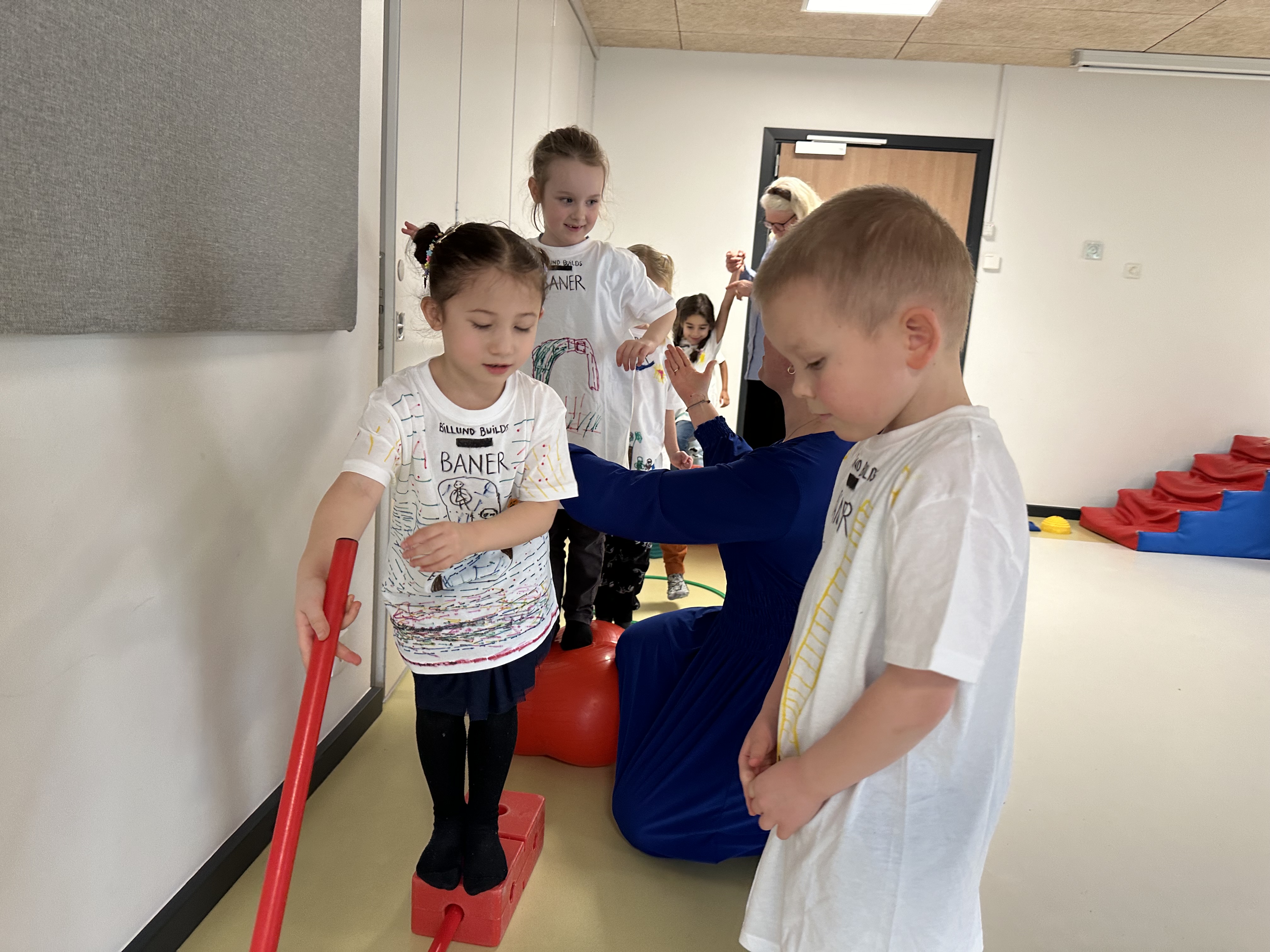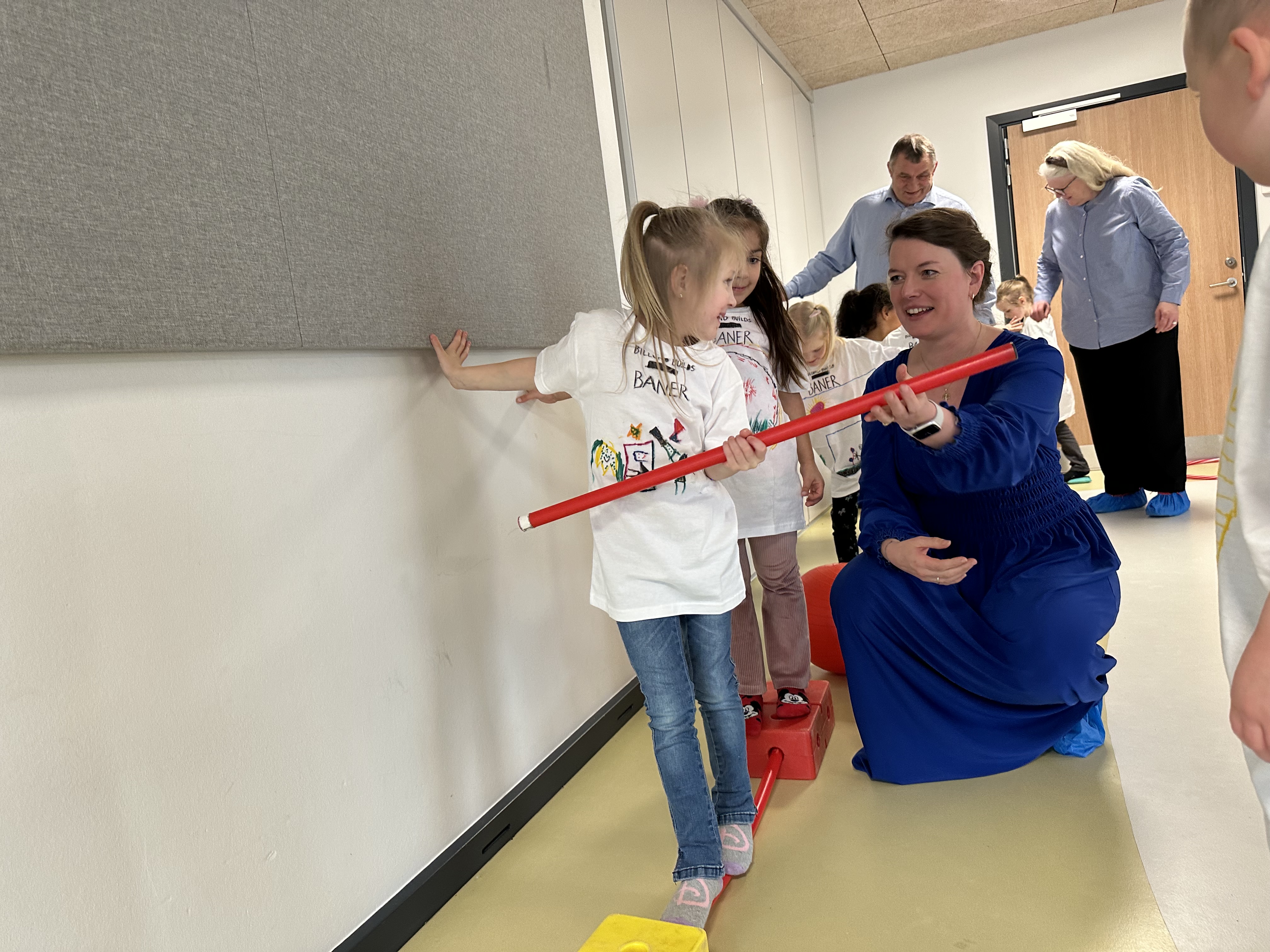 "Vores håb er, at vi sammen med de studerende og børnene får understøttet nogle stærke fællesskaber, når børnene for eksempel er med til at videreudvikle en motorikbane. Vi har fokus på samspillet mellem børnene og de studerende, når de sammen åbner idékufferten og går i gang med at bygge en masse forskellige baner med udgangspunkt i, hvad børnene har lyst til at afprøve og udvikle,” siger Britta Rask, dagtilbudsleder ved Børnenes Univers Grindsted Syd.