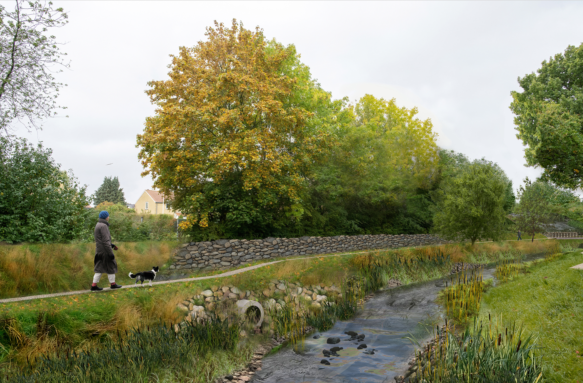 Det kan skabe store problemer for naboerne, når Harrestrup Å ved skybrud og massive mængder regn går over sine bredder og oversvømmer nærområder. Derfor skal et skybrudsprojekt få å og oversvømmelser under kontrol. Samtidig ændres åens forløb, så biodiversiteten styrkes.