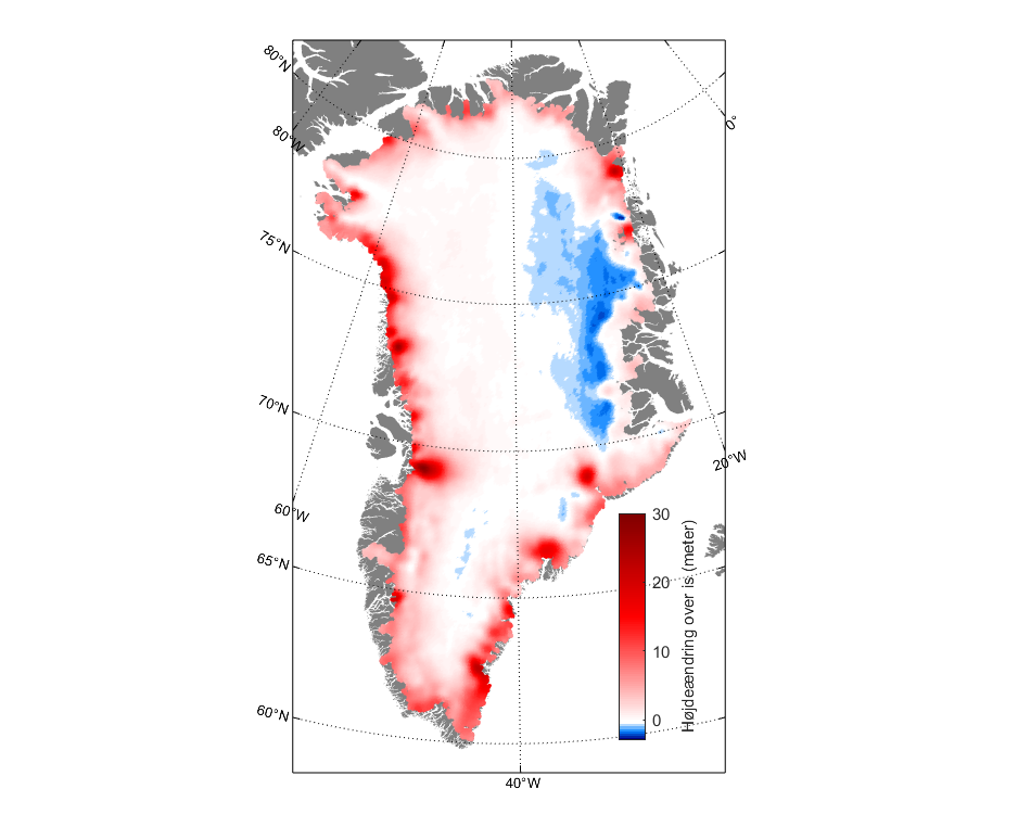 Mens store dele af resten af verden i fremtiden kommer til at kæmpe med stigende havvandstande på grund af afsmeltningen af Grønlands indlandsis, så er problemstillingen helt omvendt i selve Grønland. Her hæver landjorden sig hurtigere end vandstanden.