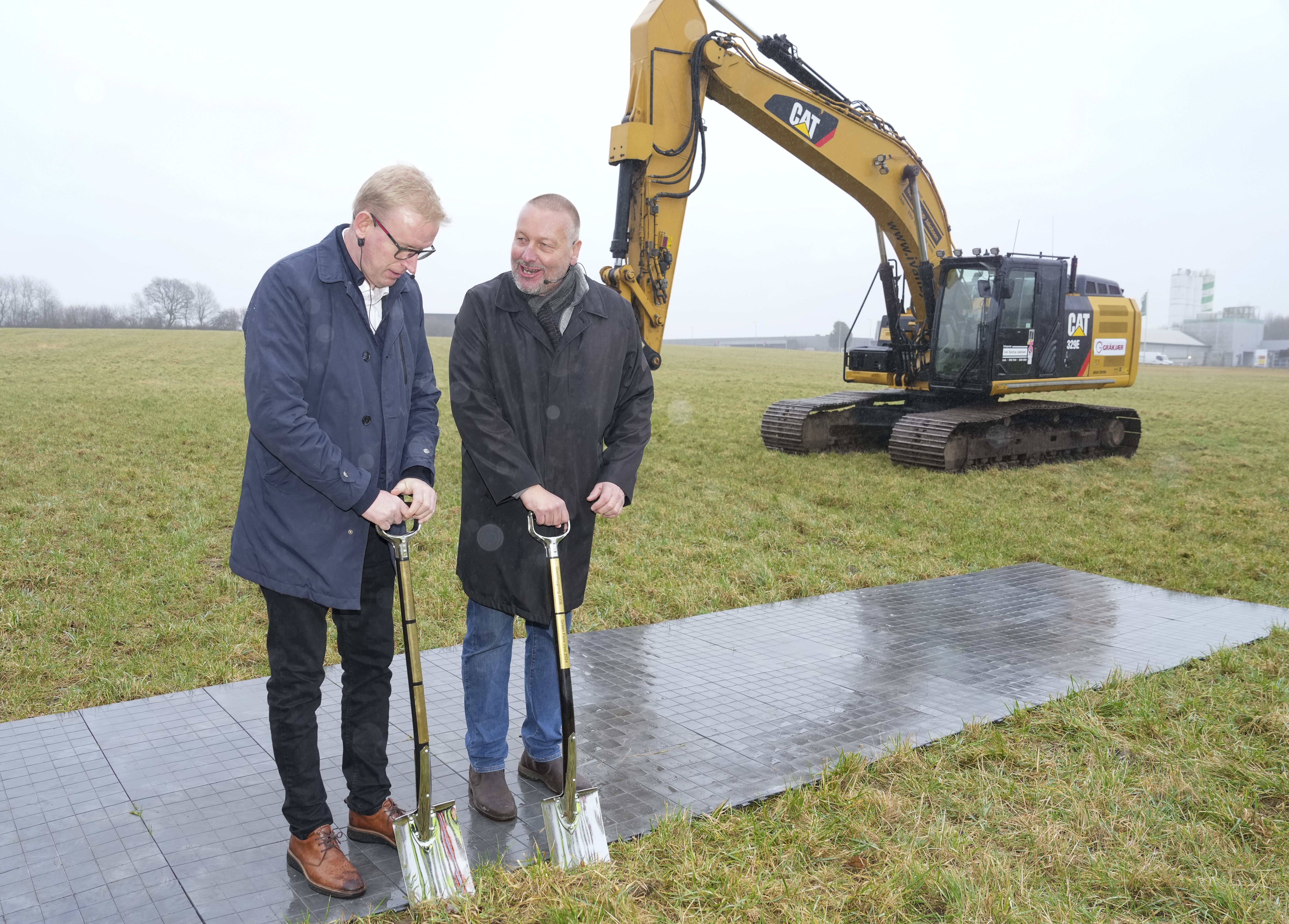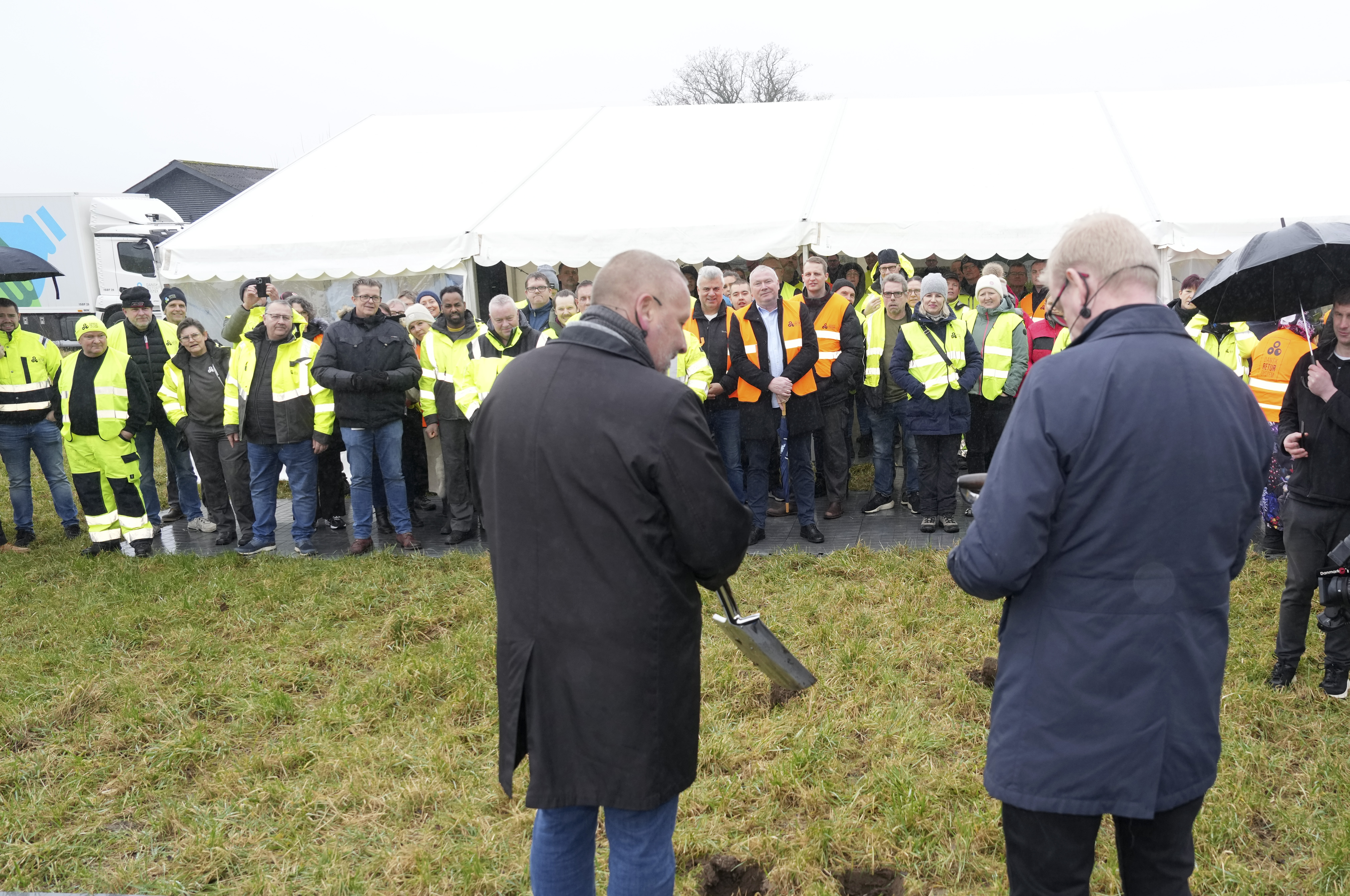Mandag den 5. februar blev det første spadestik til Dansk Retursystems nye pantfabrik i Fredericia taget af borgmester Steen Wrist og adm. direktør Lars Krejberg Petersen. Når fabrikken står klar i udgangen af 2025, skal den håndtere alle de flasker og dåser, der pantes vest for Storebælt – i højsæsonen 3,5 mio. om dagen.