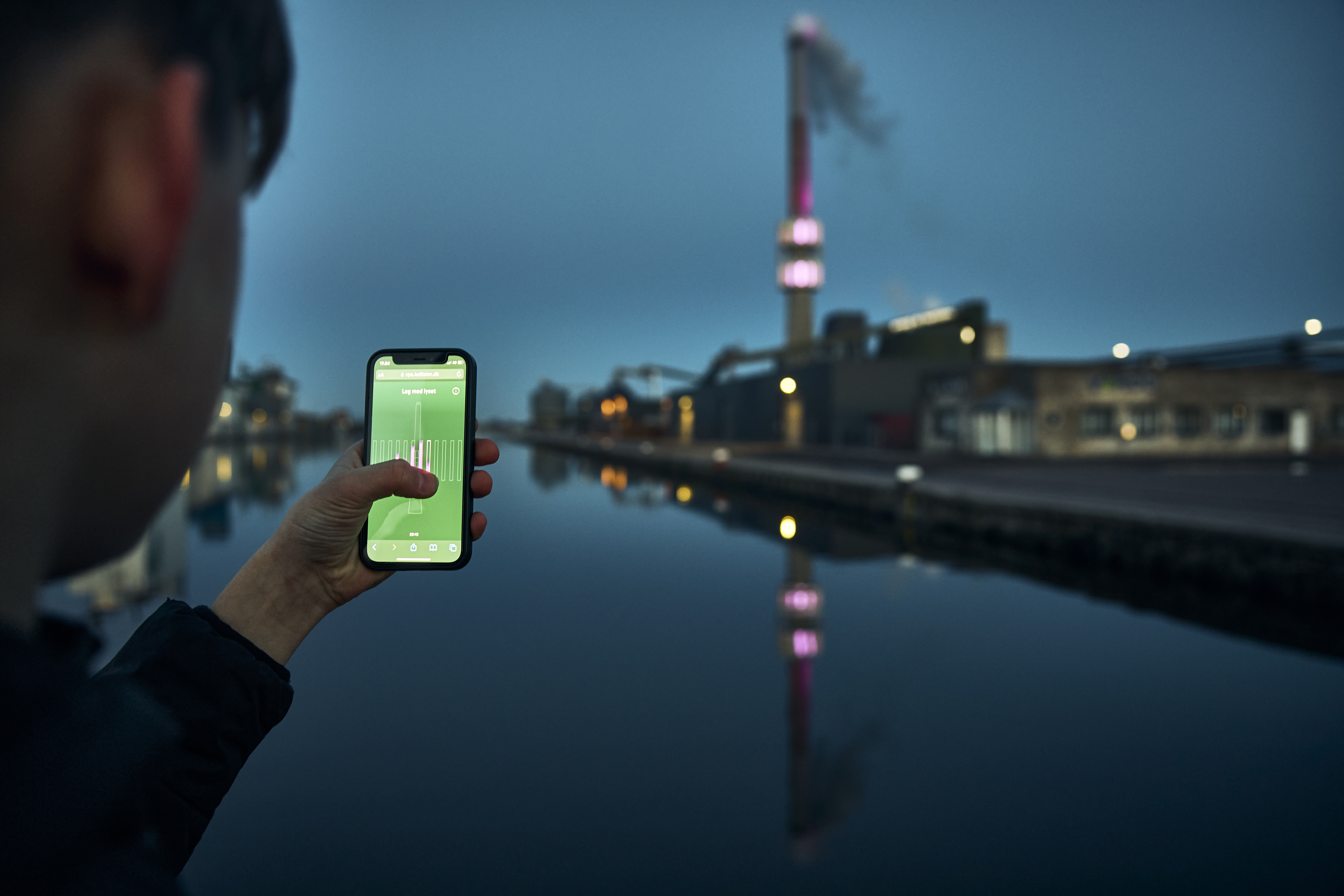”Alle i Randers kender skorstenen på havnen, og vi har fået så mange positive tilkendegivelser for den nye lyssætning, at vi synes, det kunne være en sjov oplevelse at give borgerne mulighed for at styre lyset på skorstenen. Vi er jo forbrugernes eget selskab, så tanken ligger lige for,” siger Tine Martlev Pallesen.