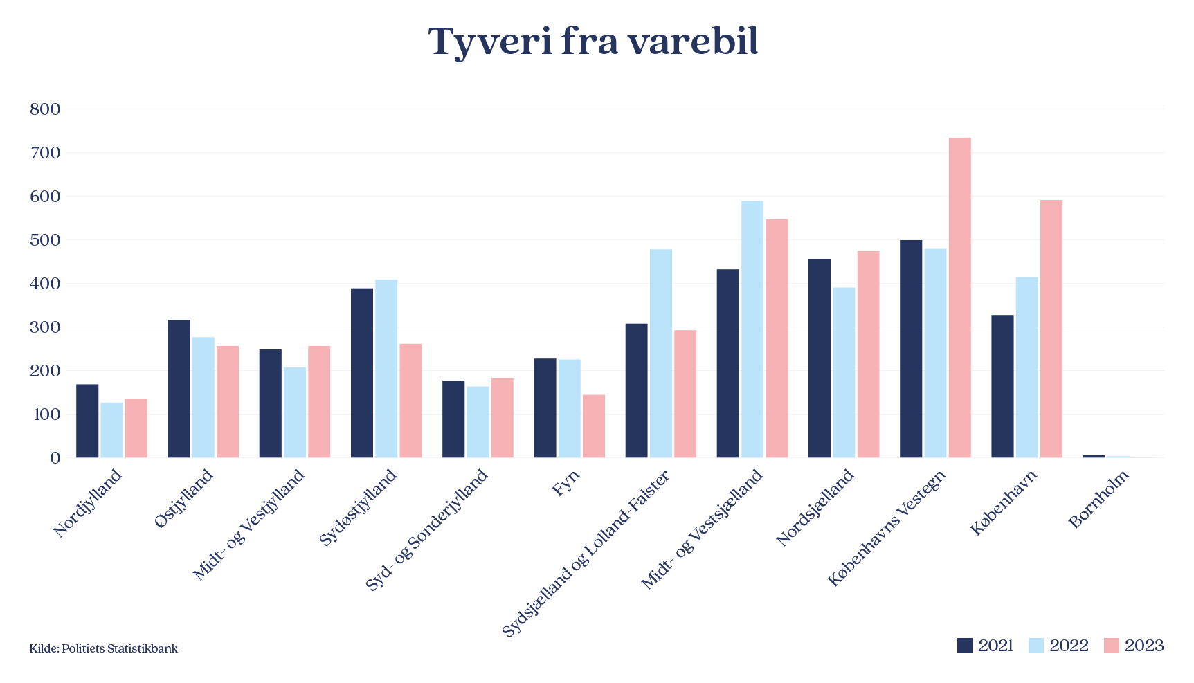 Generelt er antallet af tyveri fra varebiler steget i halvdelen af alle politikredse, og lige efter de københavnske politikredse placerer Midt- og Vestjylland samt Nordsjælland sig med en stigning på den forkerte side af 20 procent, ifølge de nye tal.