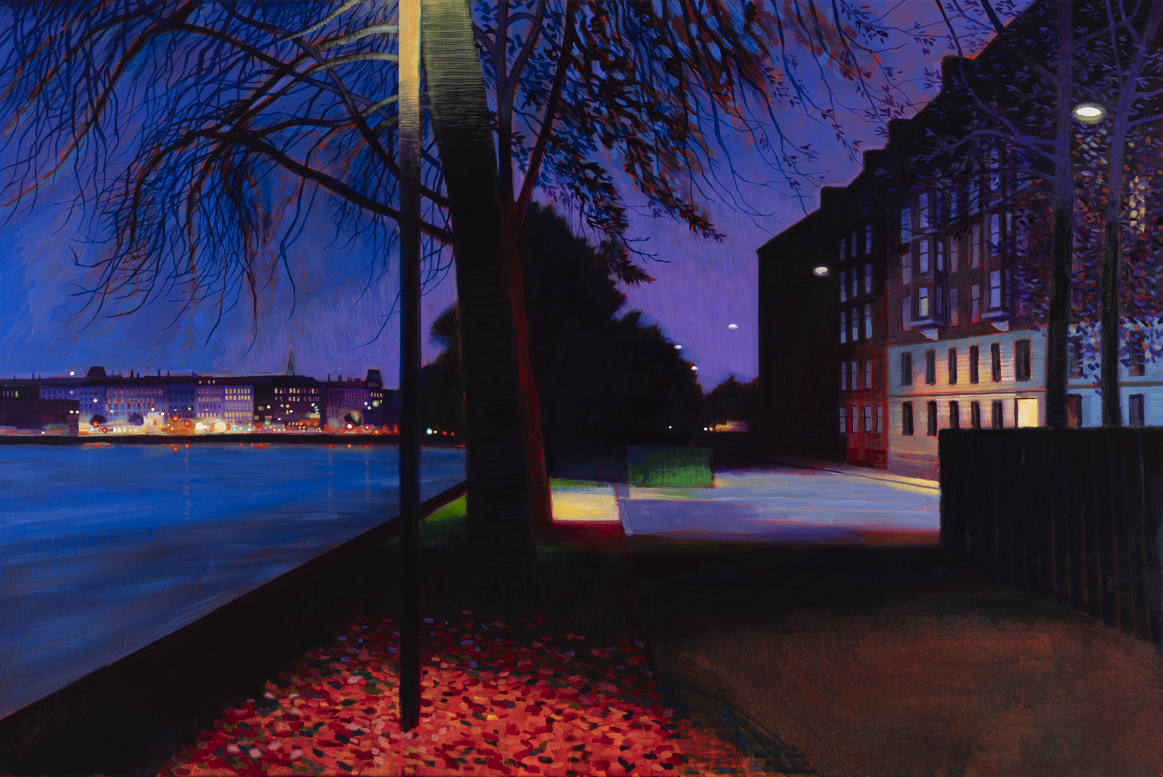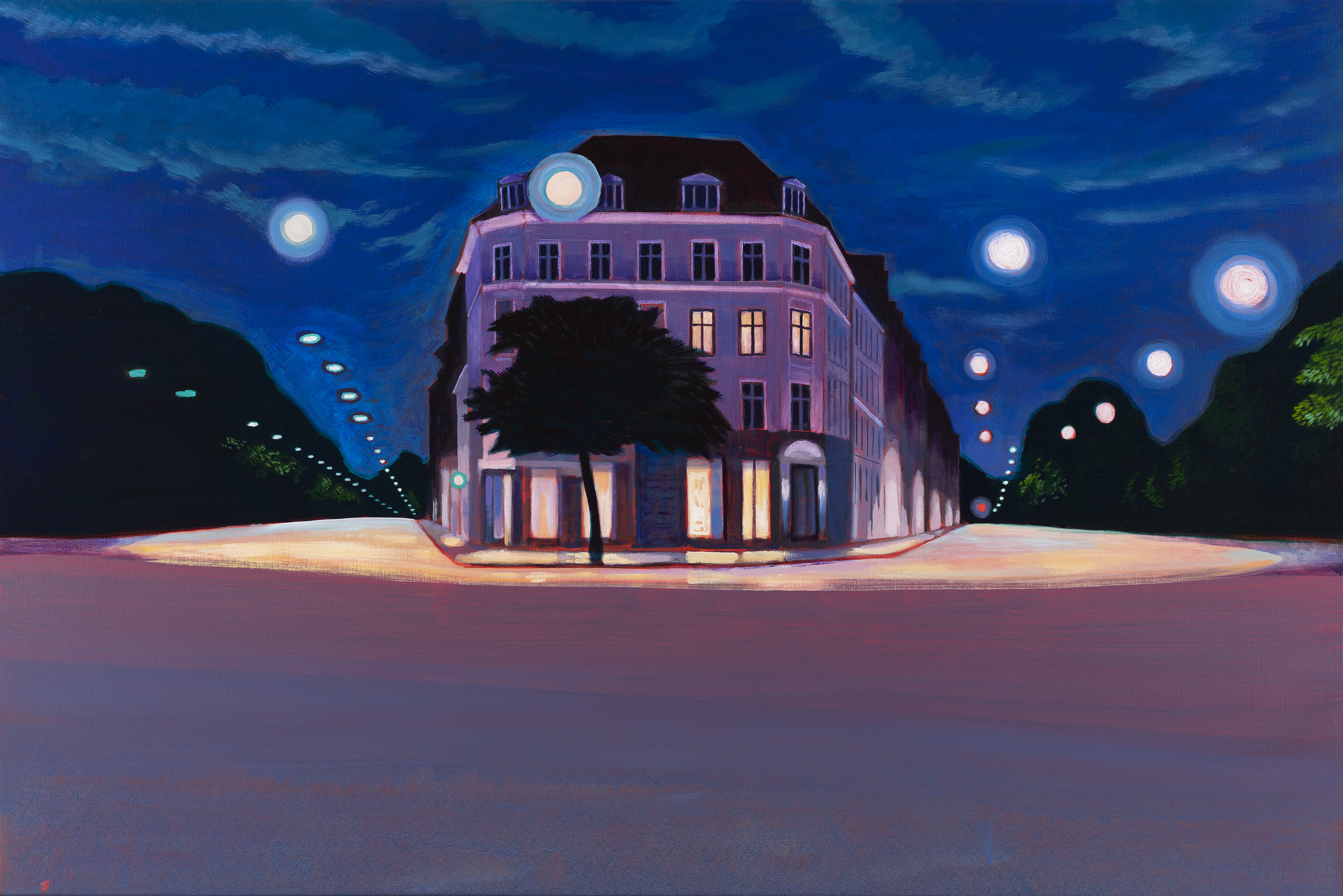 Udstillingens nutidige malerier viser en verden i undergang, men ikke med ruinbyer og brændende horisonter. I stedet ses danske mennesketomme byer gader med en urovækkende stærk rød farve, hvor gadelamper er eneste værn mod mørket.