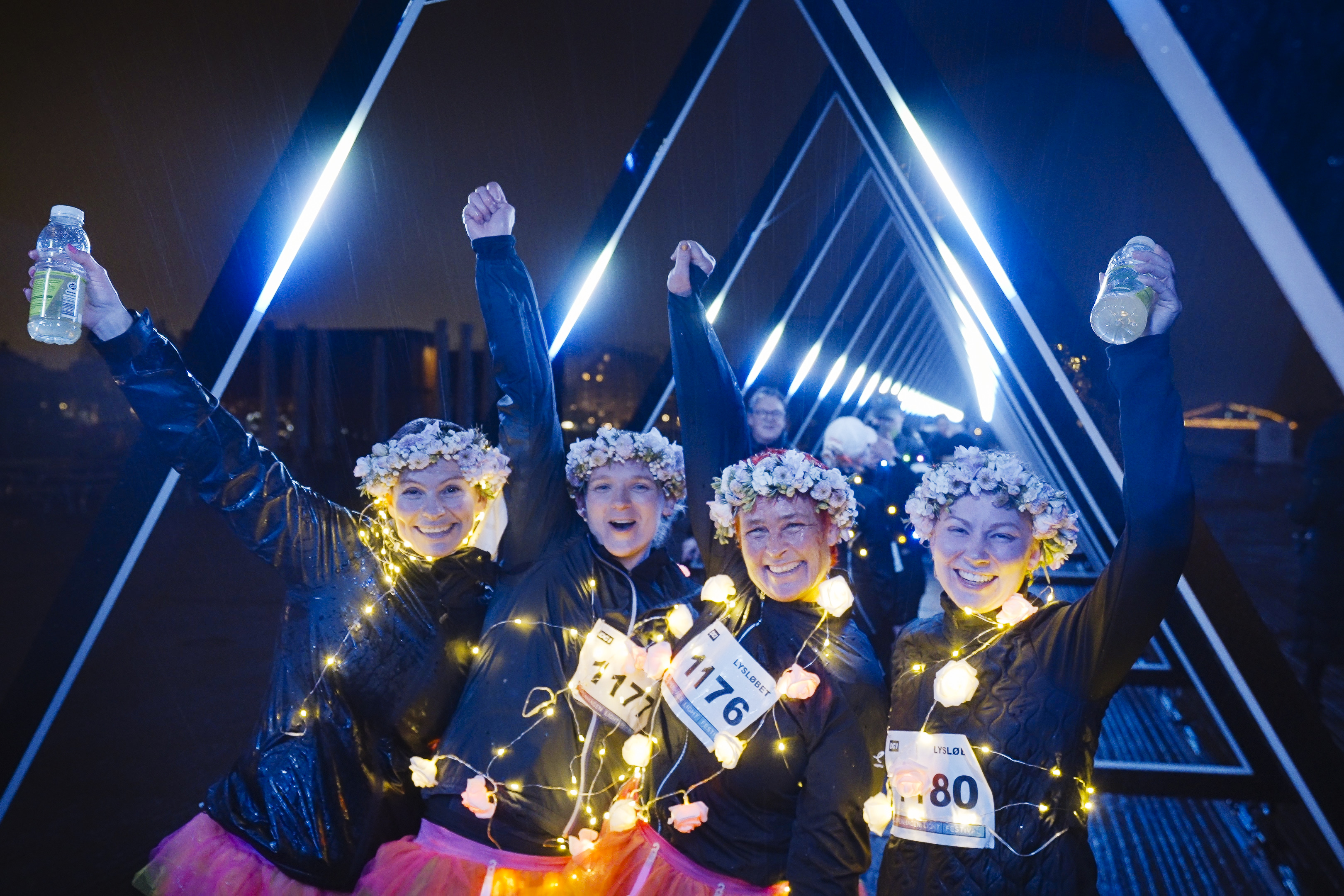 De mange løbere blev et kunstværk i sig selv, mens de passerede 16 af 50 lysværker i programmet for Copenhagen Light Festival 2024. Også aftenens Familie-Lysløb med børn og voksne på 3 km var et smukt skue.