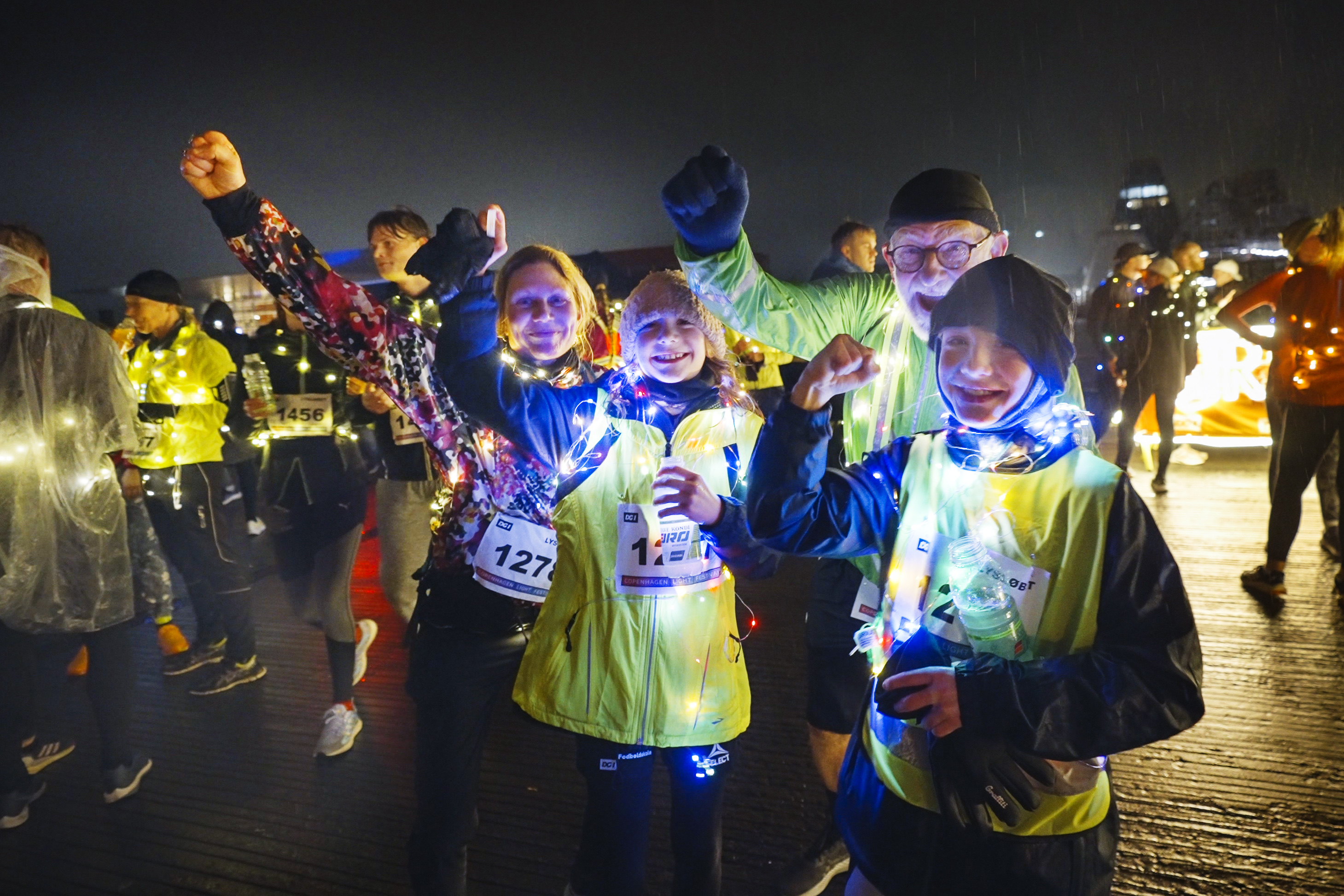 For store og små, der gerne ville slutte vinterferien af med en fælles lysoplevelse, gik startskuddet til Familie-Lysløbet en halv time senere fra Ofelia Plads. Den 3 km lange rute var lagt med blik for, at barne- og løbevogne nemt kunne komme frem, så selv de helt små kunne tage del i oplevelsen.