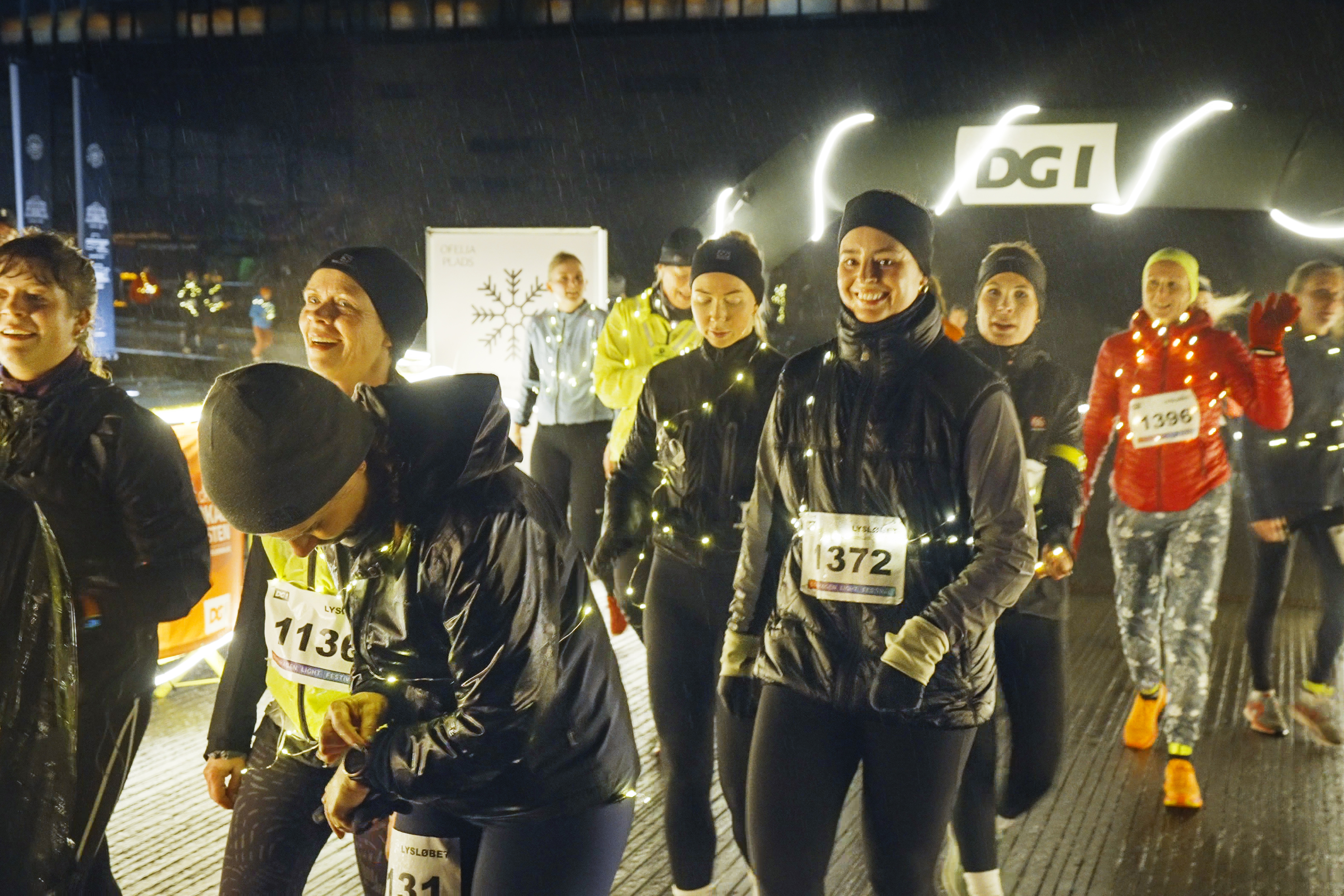 Løberne samledes ved Det Kongelige Teaters Skuespilhus og lysværket The Wave på Ofelia Plads. Med hver deres lyskæde monteret på tøjet indtog de i fællesskab rollen som lysløbere under Copenhagen Light Festival. Et lysværk i sig selv.