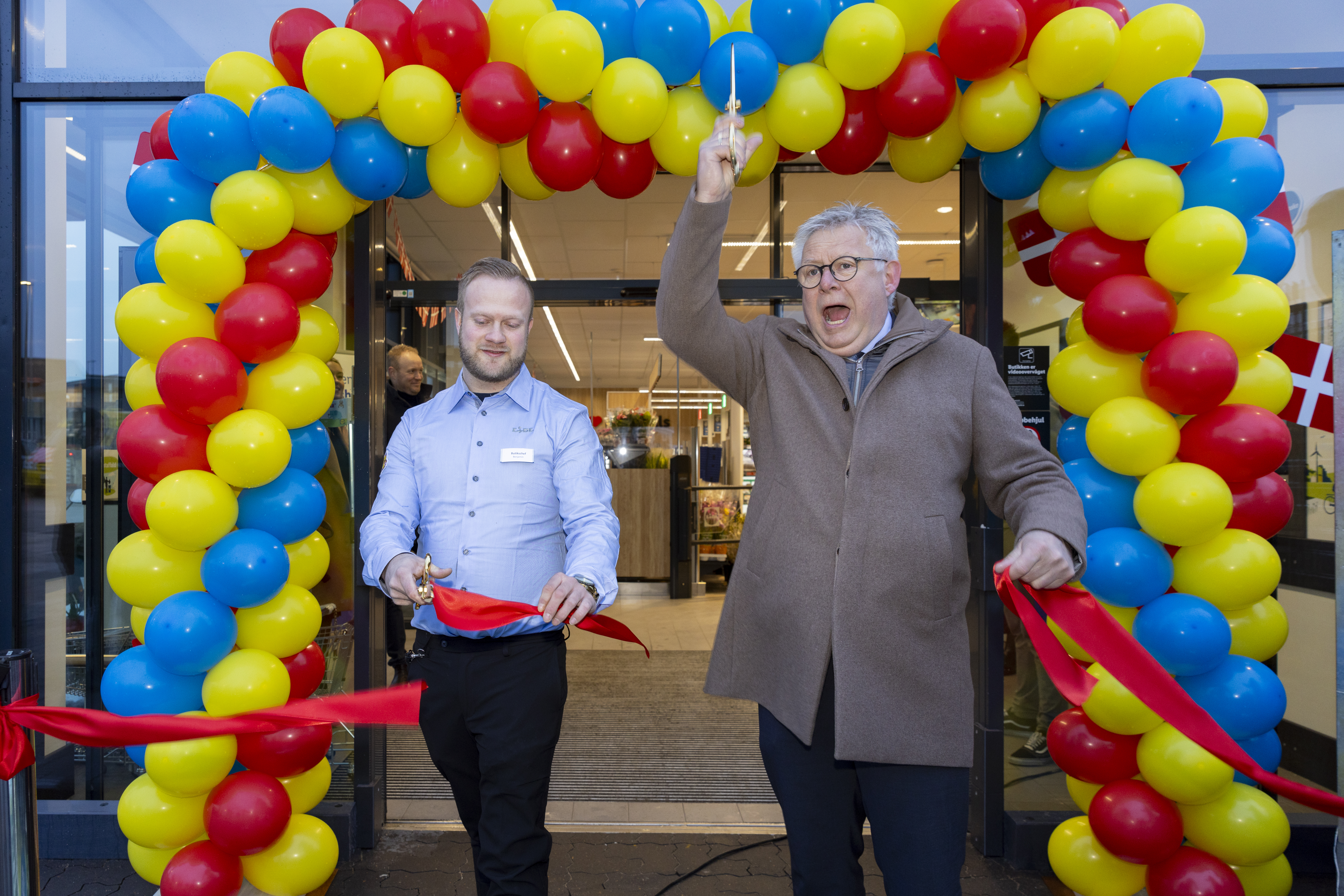 Smilet var tilsvarende stort hos borgmester for Hjørring Kommune, Søren Smalbro (V) og butikschef Benjamin Fridlund, som efter en velkomst med taler synkront klippede det røde bånd med hver sin gyldne saks og erklærede butikken for åben.