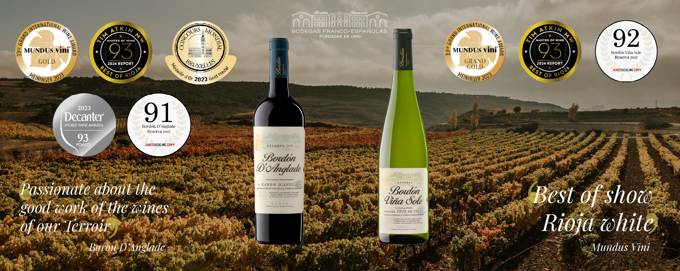 - Rioja Bordón: med medaljerne Gran Oro og Oro i de prestigefyldte konkurrencer Mundus Vini eller verdenskonkurrencen i Bruxelles. Og med karakterer over 90 punkter fra prestigefyldte kilder som Wine & Spirits, Andreas Larsson, Tim Atkin, eller Decanter.