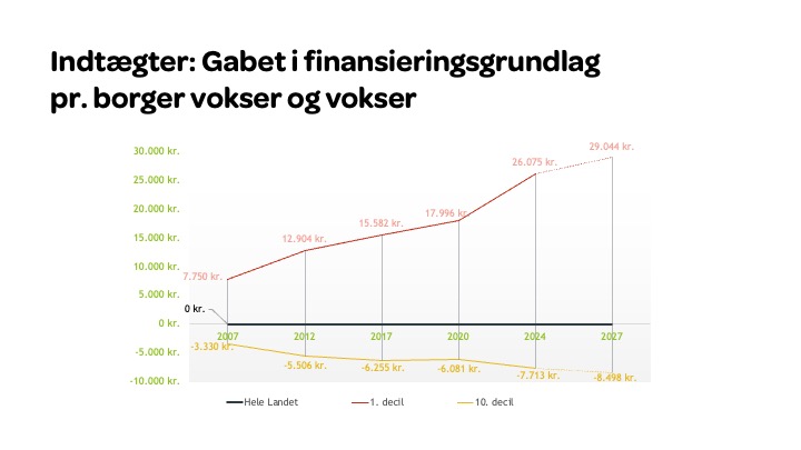 Udligningsreformen udhuler finansieringsgrundlaget pr. borger i nogle kommuner, så de bliver fattigere og fattigere sammenlignet med gennemsnittet - også selvom kommunerne klarer sig godt på vækst, jobskabelse og har lave omkostninger til administration: