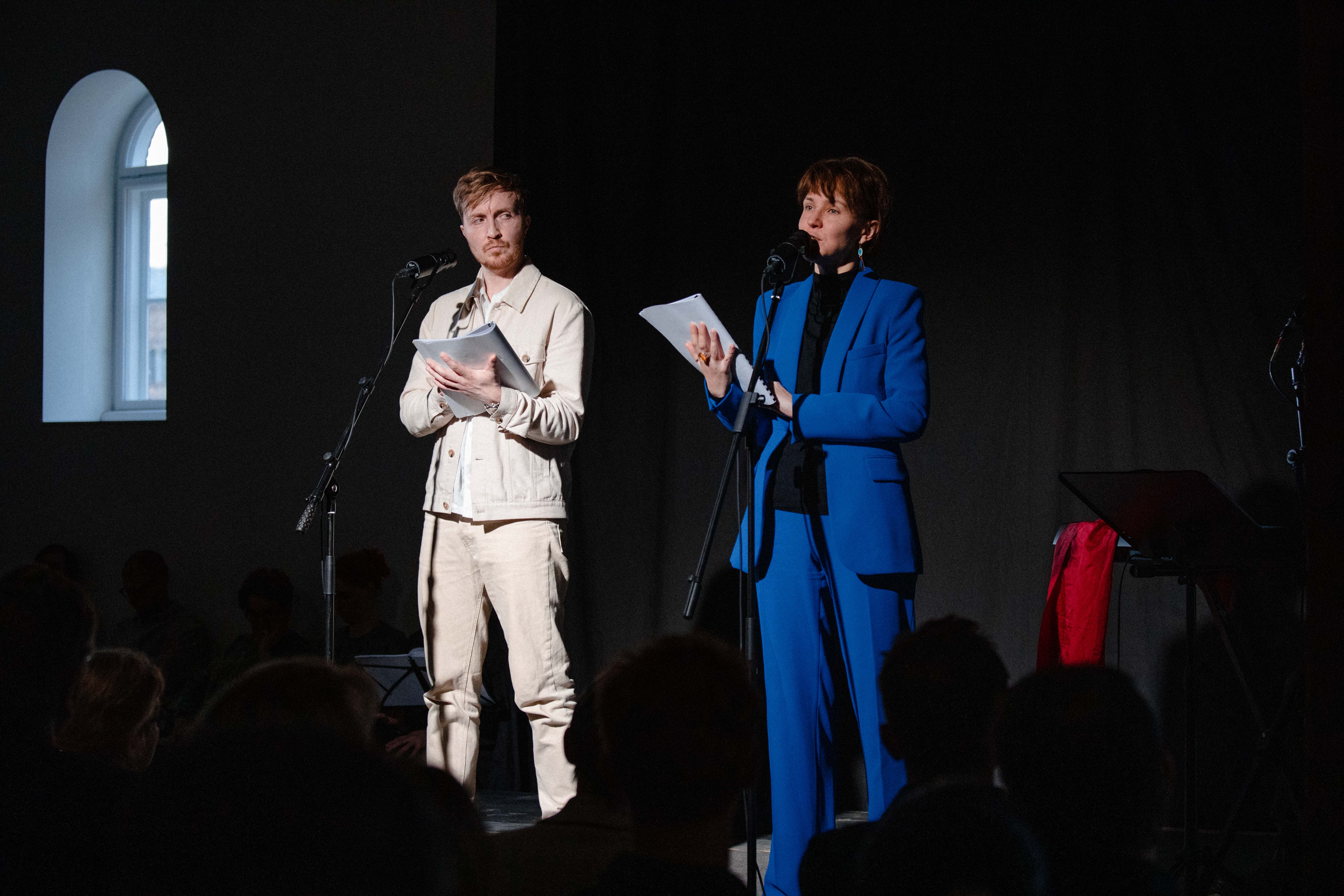 Six Ukrainian authors - Kateryna Kalytko, Iya Kiva, Halyna Kruk, Iryna Tsilyk, Iryna Shuvalova, and Oleksandr Mykhed - shared their poetry, with Danish actors Ghita Nørby, Sophie Grobjøl, Klas Bang, Mia Lerdam, and Niklas Søderberg Lundstrøm rendering their works in Danish. The evening was further enriched by a captivating musical arrangement by Ukrainian performer Olesya Zdorovetska.