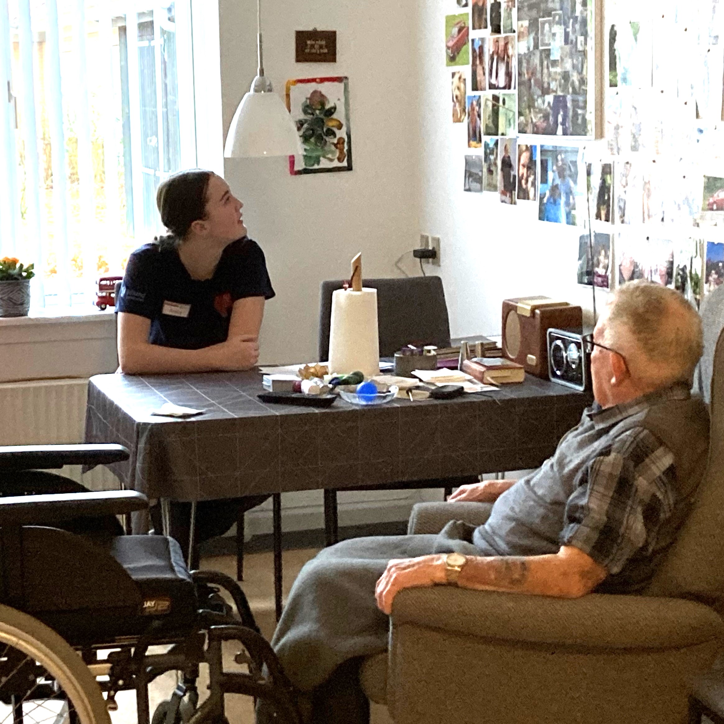 Amia er en af de i alt 17 unge, som i øjeblikket har fritidsjob på kommunens otte plejehjem. De unge er til stor glæde og gavn for både beboere og pårørende, når de hjælper til med aktiviteter i hverdagen. Men det er ikke kun beboerne, der glæder sig over fritidsjobberne. Det gør personalet også. For de unge frigør tid fra det uddannede personale til at tage sig af andre opgaver.