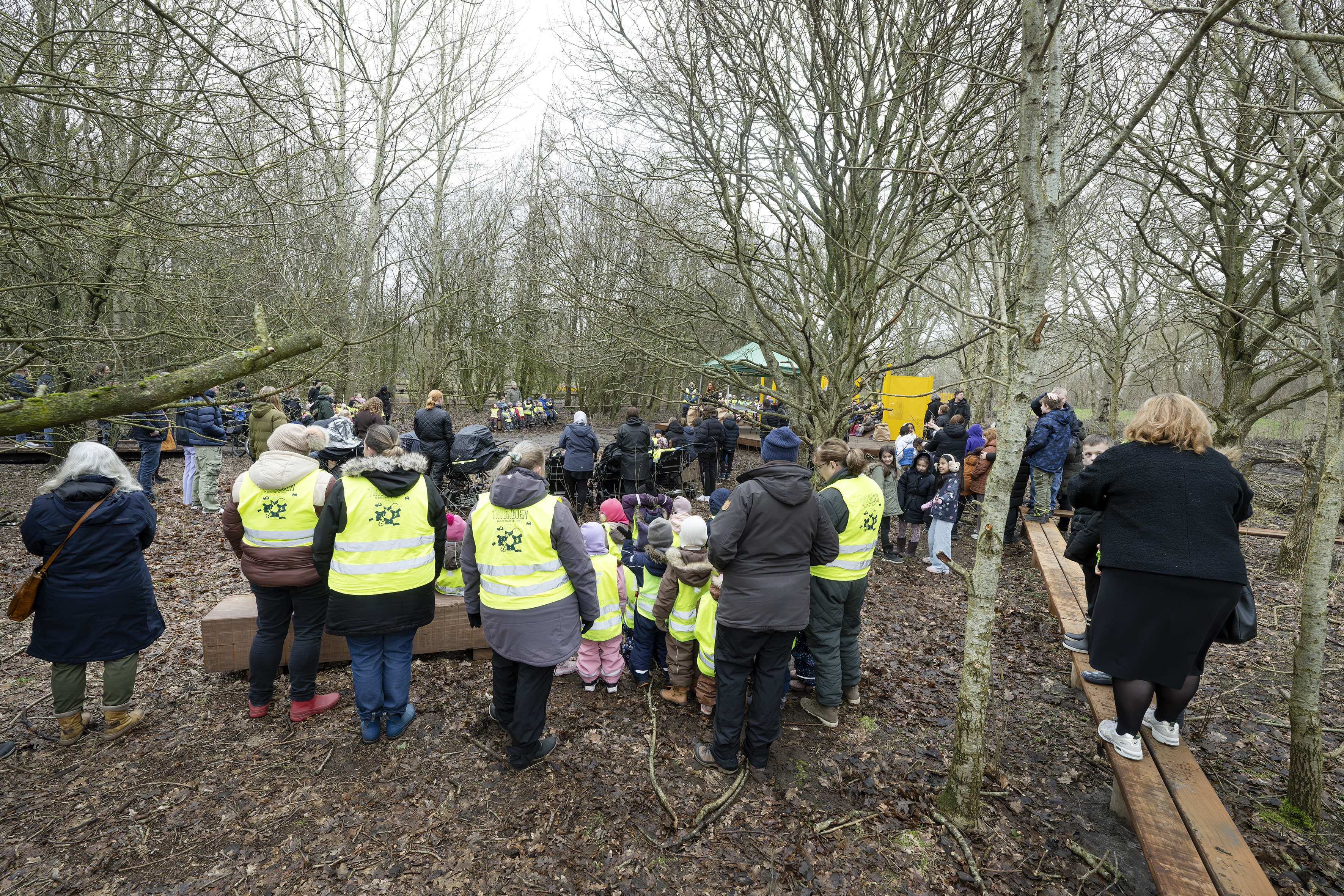 ”Stier og gangbroer giver det grønne område et løft, som helt sikkert gør det mere attraktivt at besøge stedet. Med forårets komme får besøgende rig mulighed for at opleve skoven fra sin bedste side, og indretningen er udformet, så den især henvender sig til børn, som passes i de nærliggende daginstitutioner, hos lokale dagplejere og selvfølgelig indskoling,” siger Jakob Lose, formand for Kultur & Fritidsudvalget. Ved dagens indvielse fik han hjælp af en masse børn fra Børnehuset Bøndergårdsvej, Tinghøjen, indskolingen fra Præstegårdsskolen Urban og de yngste elever fra Specialundervisningscenter Urban.