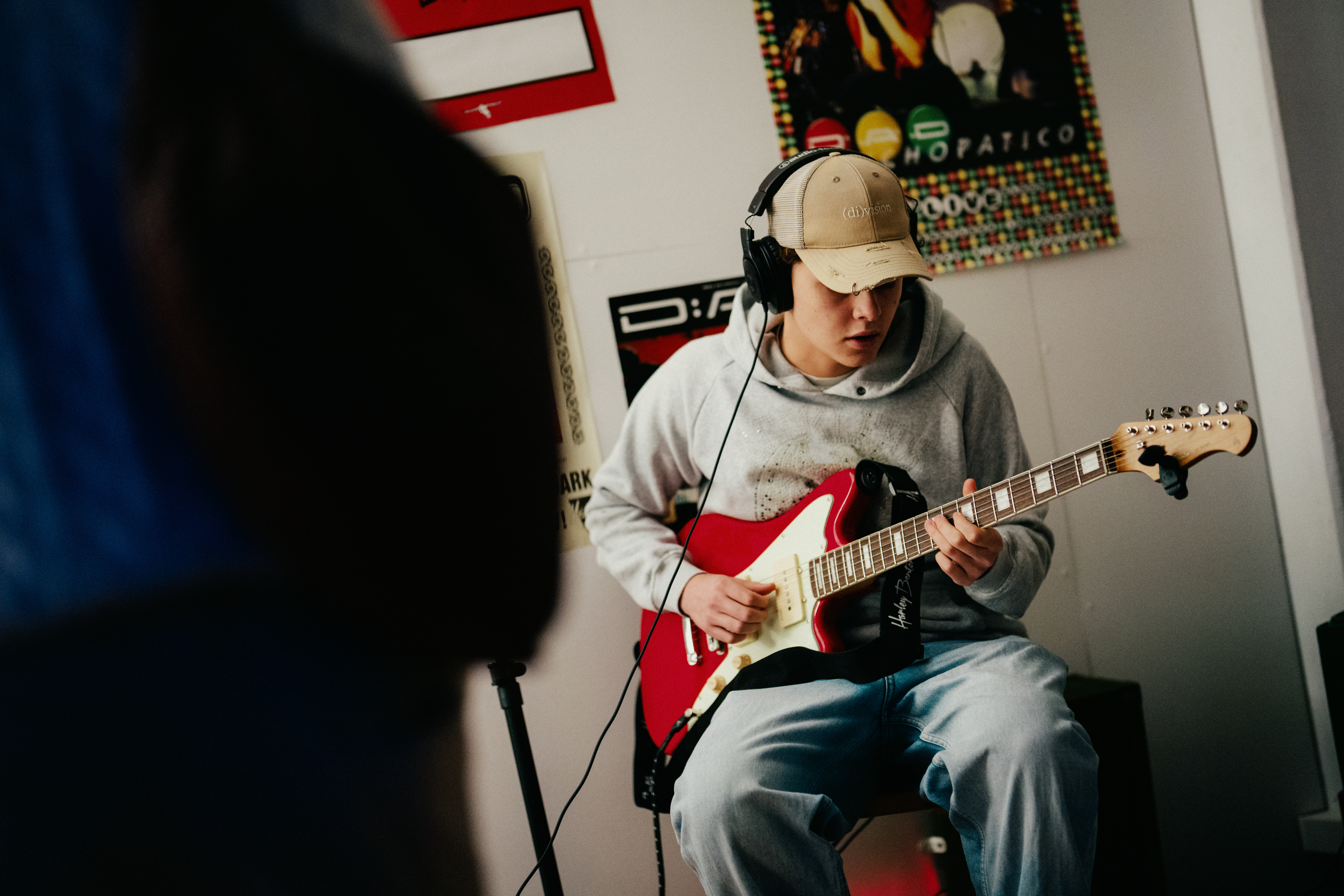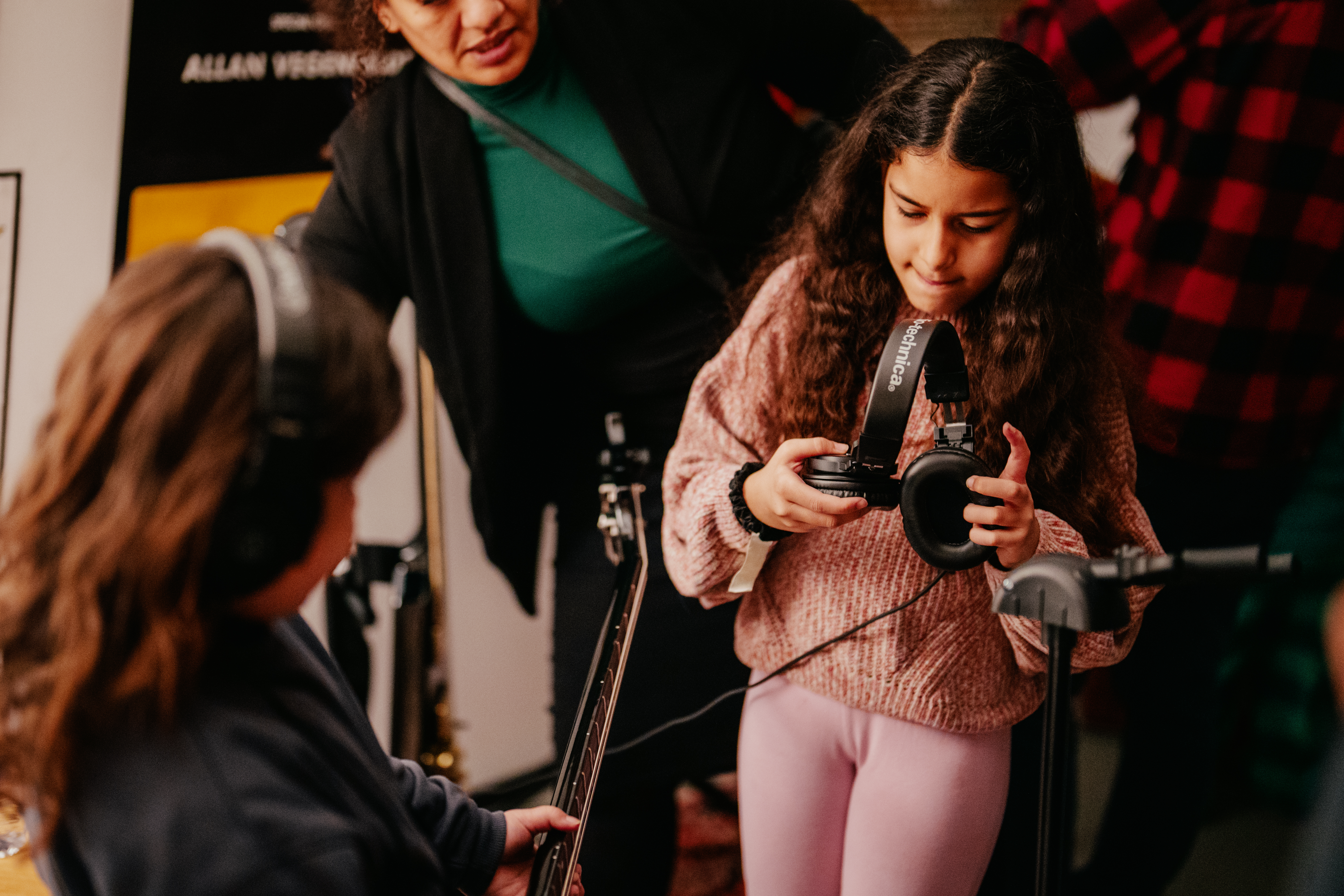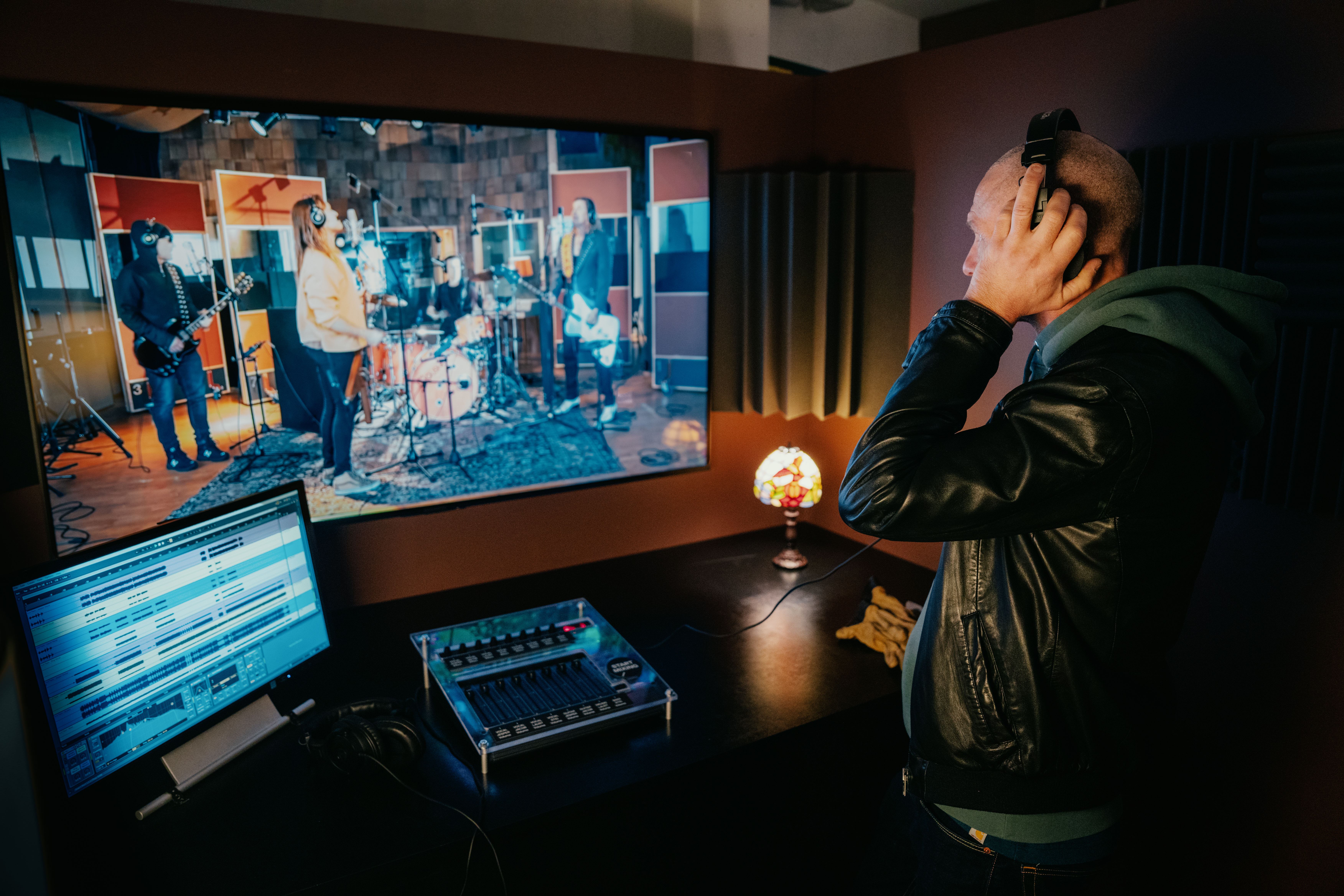 Enter the band’s rehearsal room, where you can play music and mix a track.