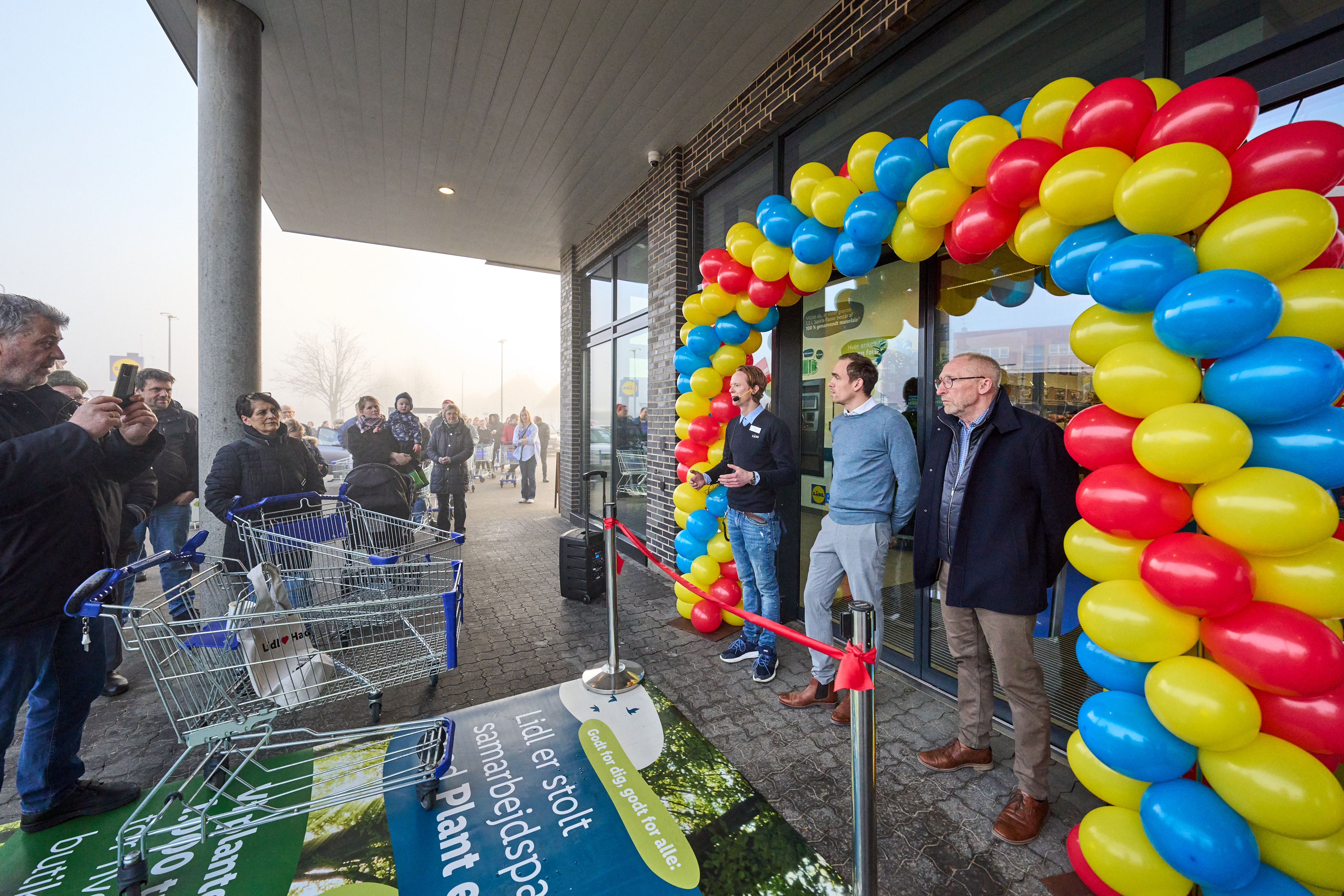Der var højt humør og lang kø foran indgangen, da Lidl torsdag morgen åbnede sin nye butik på Højengen i Kokkedal. Borgmester i Fredensborg Kommune, Thomas Lykke Pedersen, stod for snoreklippet sammen med butikschef Benjamin Bohn, og de mange fremmødte kunder blev budt velkommen med morgenkaffe, en bolle med ost og mange skarpe juletilbud.