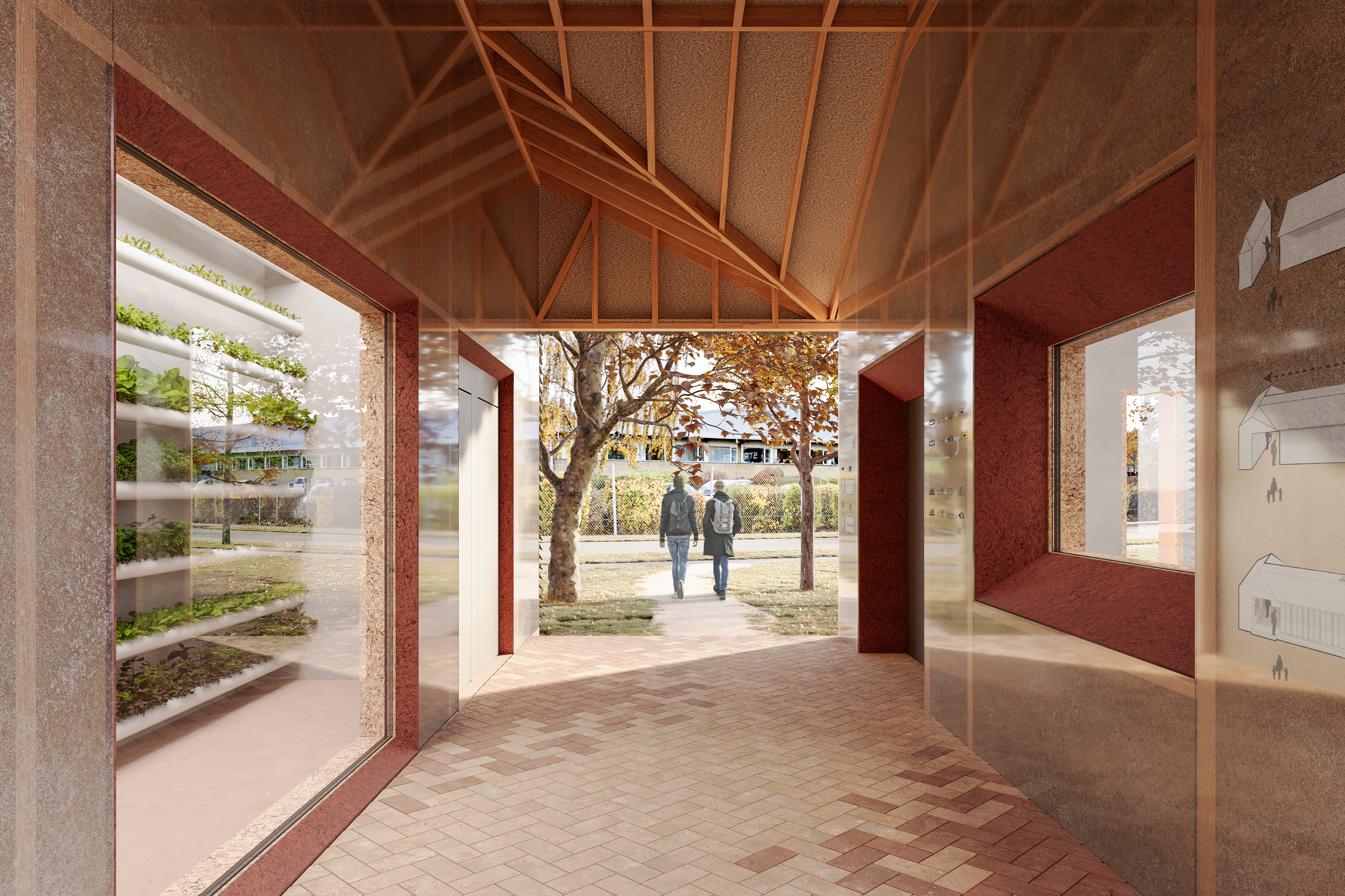 Hampens Hus er tegnet af den nye tegnestue nikolova/aarsø i København, som har specialiseret sig i byggeri med biobaserede byggematerialer, som fx træ eller hamp. Materialerne til Hampens Hus importeres fra flere forskellige lande. Men ifølge tegnestuen burde det ikke være sådan: