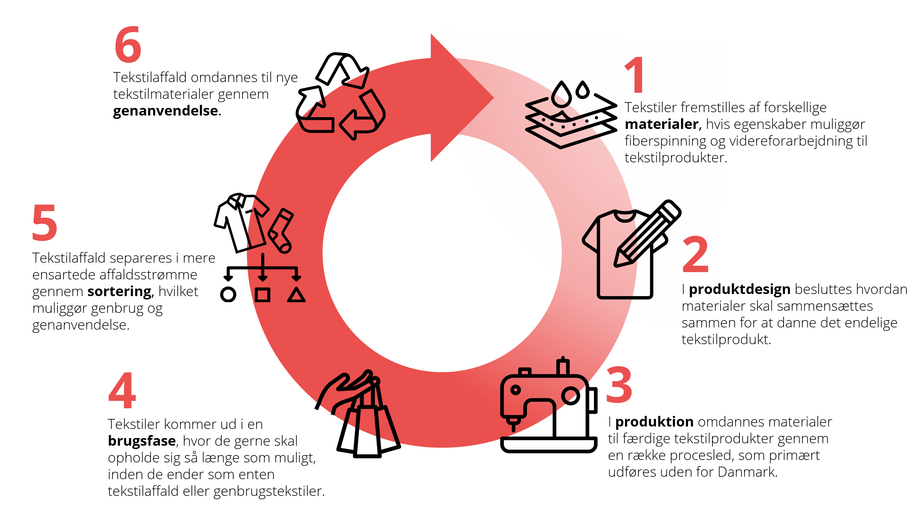 - Tekstilaffald er komplekst og forskelligartet: Kompleksiteten af tekstilprodukter og forskelligartetheden i tekstilaffaldsstrømmen er en udfordring for både sorterings- og genanvendelsesteknologier, hvilket reducerer mængden af tekstilaffald, der kan genanvendes.