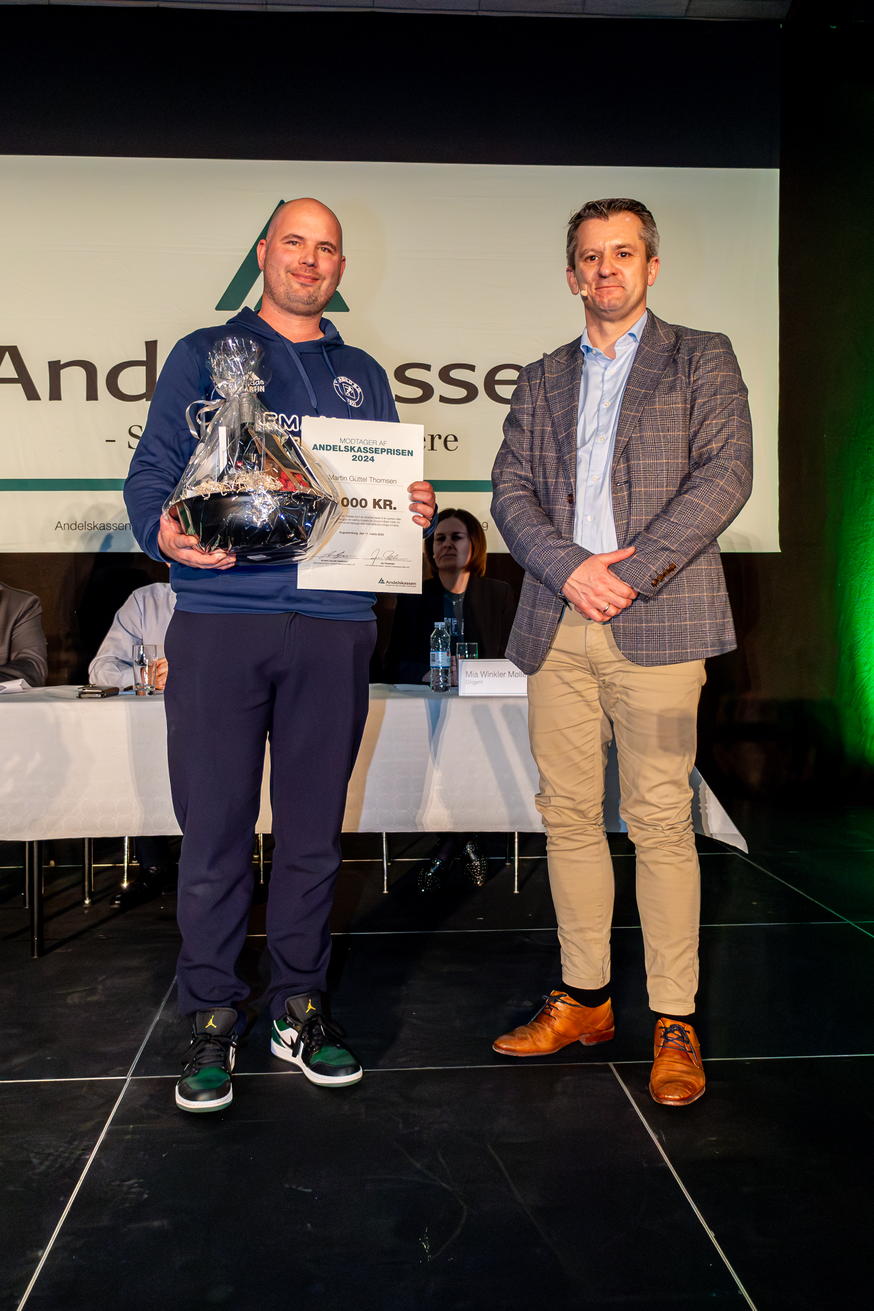 Sådan lyder det blandt andet i indstillingen, Andelskassen modtog på Martin. Martin modtog Andelskasseprisen 2024 og 5.000 kroner samt en kurv med velsmagende specialiteter.