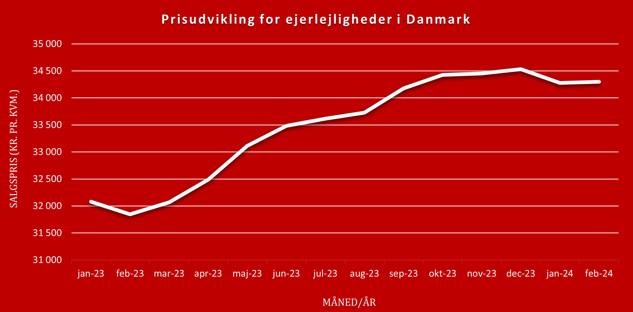 Dermed kostede en gennemsnitlig ejerlejlighed på 80 kvadratmeter lidt over 2,7 millioner kroner i februar.