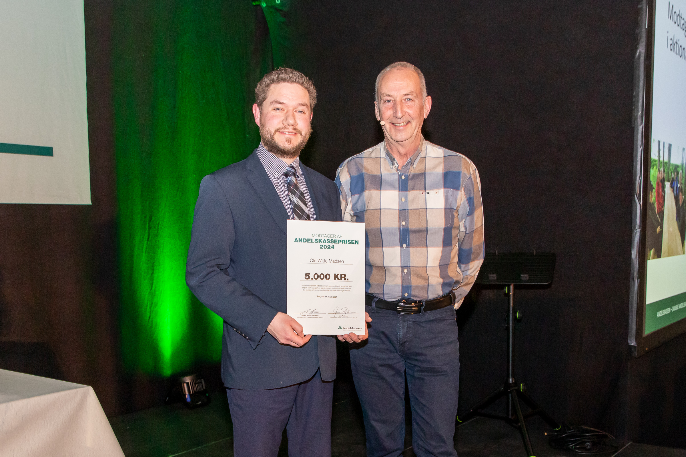 Ole modtog Andelskasseprisen 2024 og 5.000 kroner samt en kurv med velsmagende specialiteter.