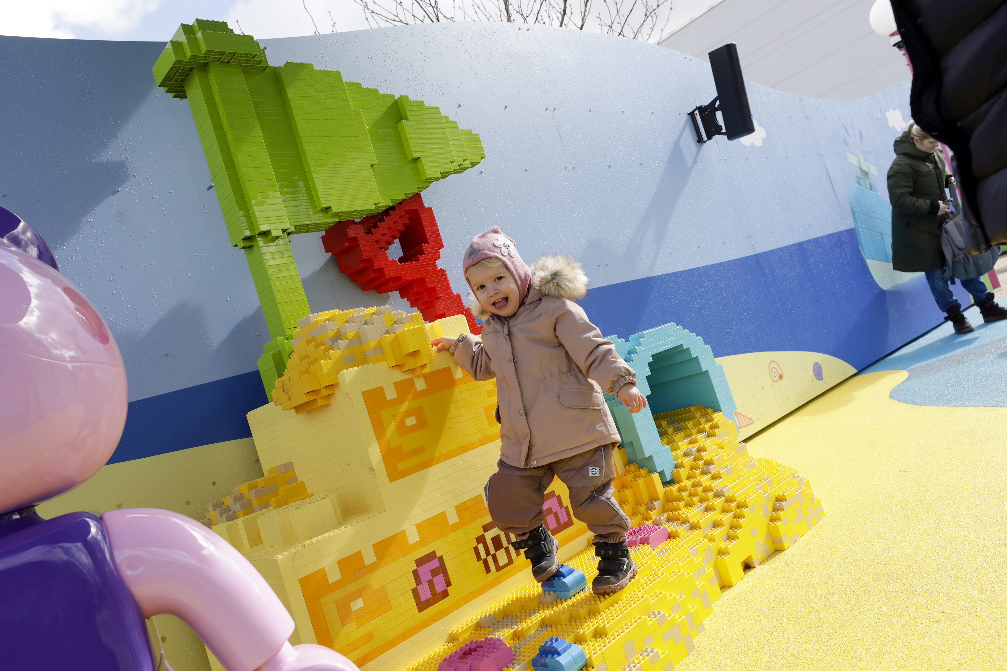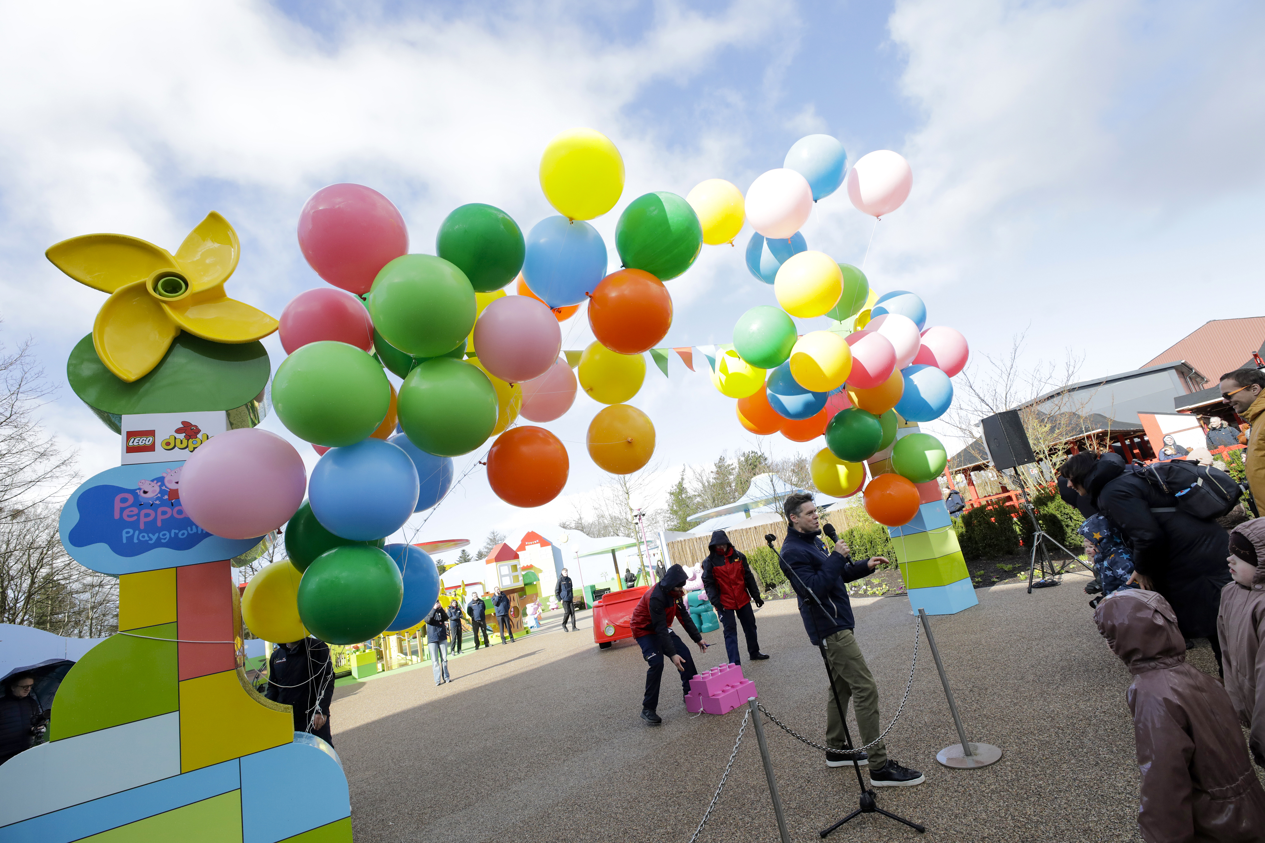 100 store balloner skjulte indgangen til det helt nye LEGO® DUPLO® Gurli GrisTM område i LEGOLAND® tidligere i dag, hvor børn og familier var samlet for at være blandt de allerførste til at opleve dette års nyhed i LEGOLAND. Efter en nedtælling spredte ballonerne sig, og verdens første virkelige kombination af LEGO DUPLO og Gurli Gris blev afsløret under en himmel fyldt med sæbebobler, og børn der kom løbende ind i det nye område for at møde Gurli Gris, hendes familie og andre karakterer fra den populære, animerede TV-serie.