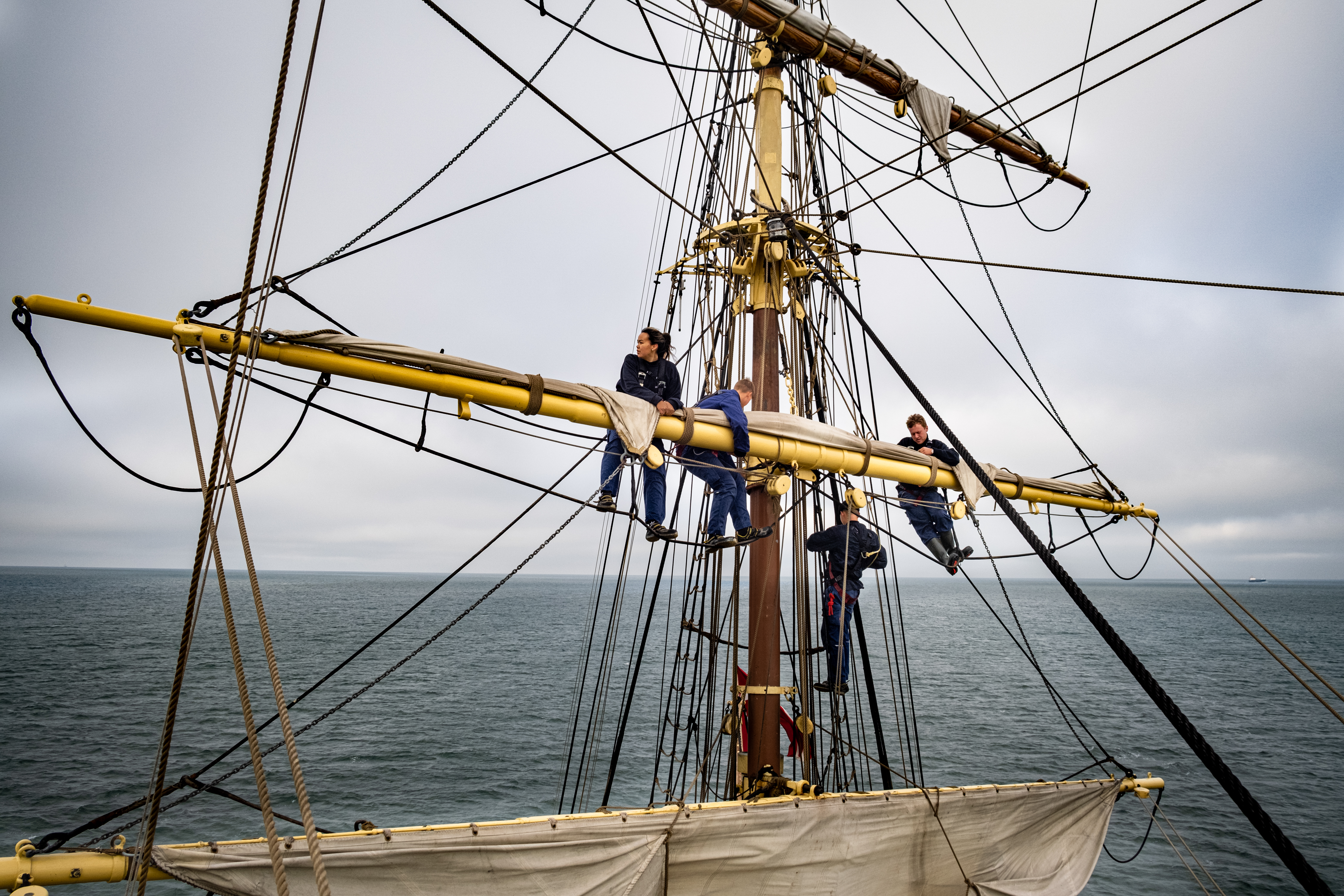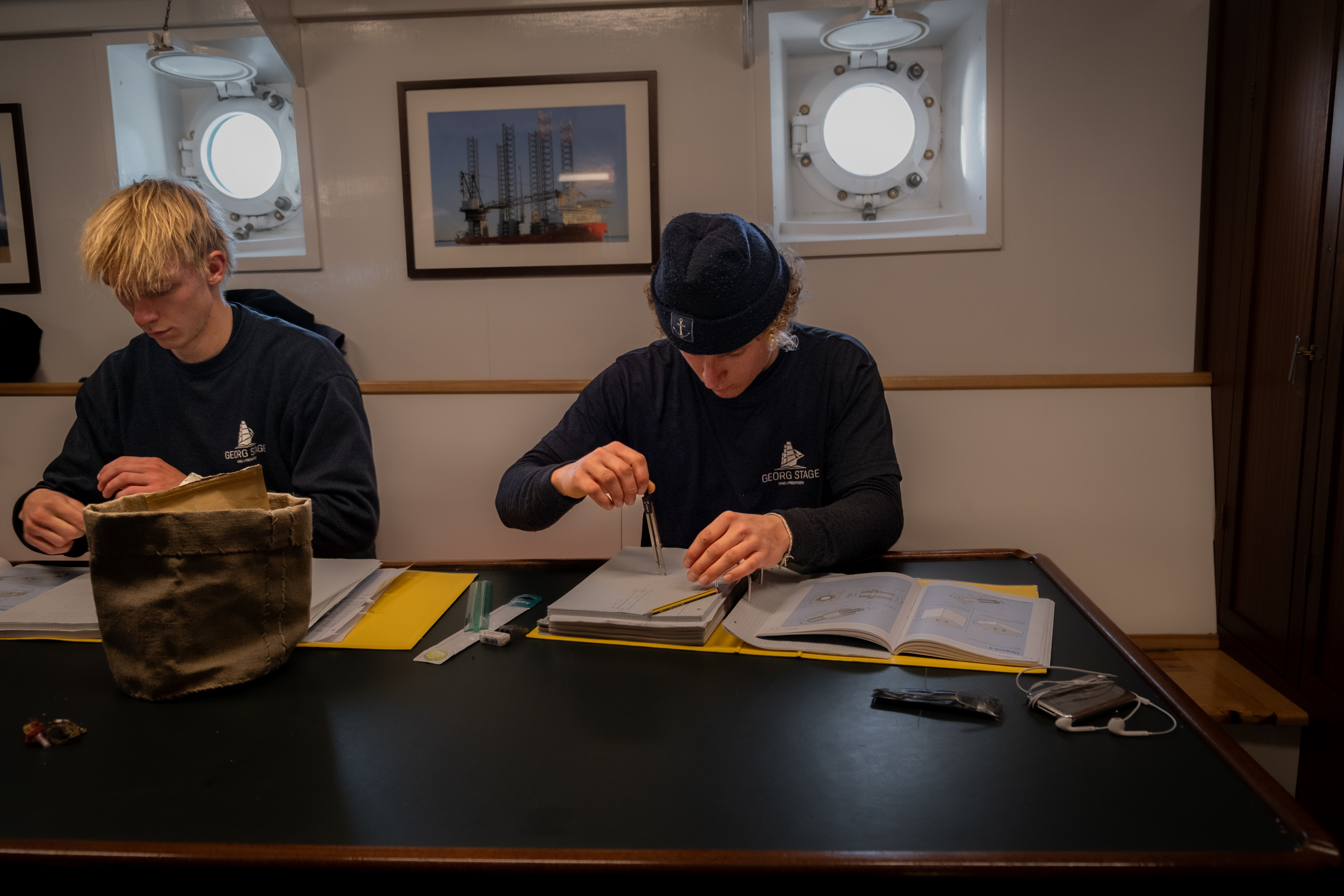 I løbet af de 20 uger skal eleverne have masser af undervisning, men de deltager også i vagterne i deres skifter, for skibet sejler både om dagen og natten gennem. Efter aftensmad binder eleverne deres hængekøjer op. An på hvilket skifte der først går på vagt, får de henholdsvis fire eller seks timers søvn. I løbet af natten bliver de purret (vækket), trækker i tøjet og stavrer til mønstring på dækket.