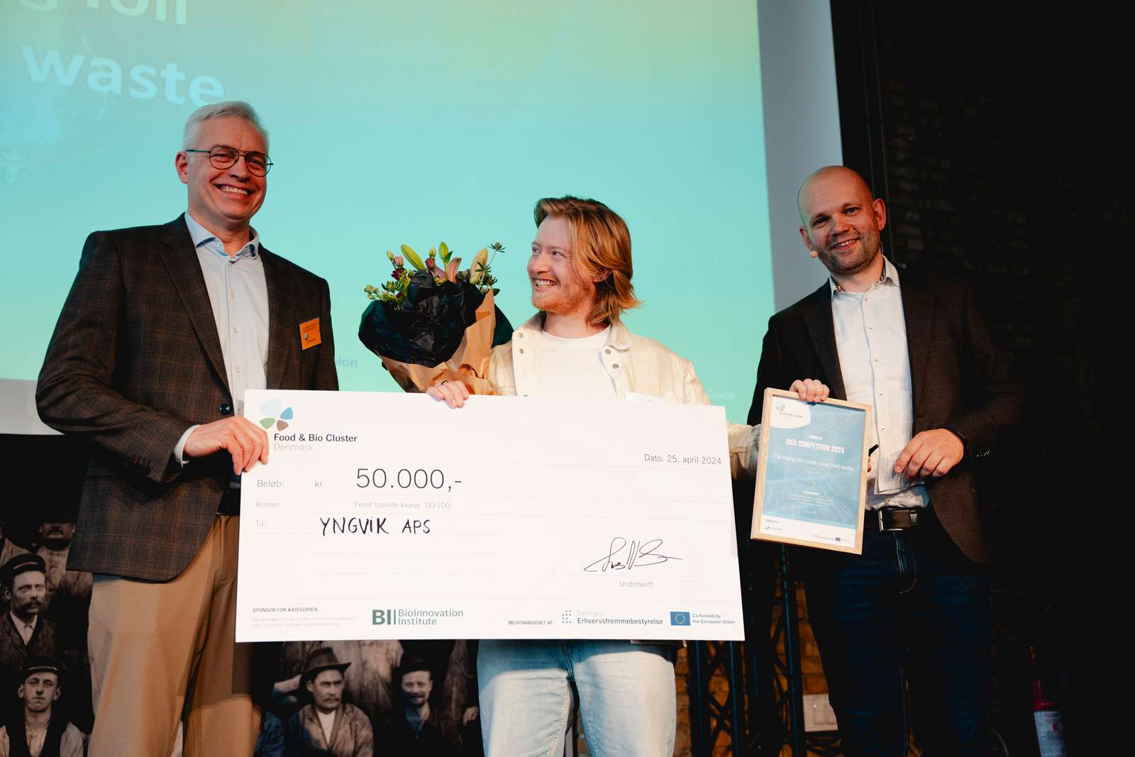 Hele fire x 50.000 DKK skiftede hænder ved årets idekonkurrence i Food & Bio Cluster Denmark. Fire ideer blev valgt som de mest lovende og perspektivrige ud af de otte ideer der blev pitchet fra scenen ved klyngens årsmøde Food & Bio Summit 2024 på Centralværkstedet i Aarhus.
