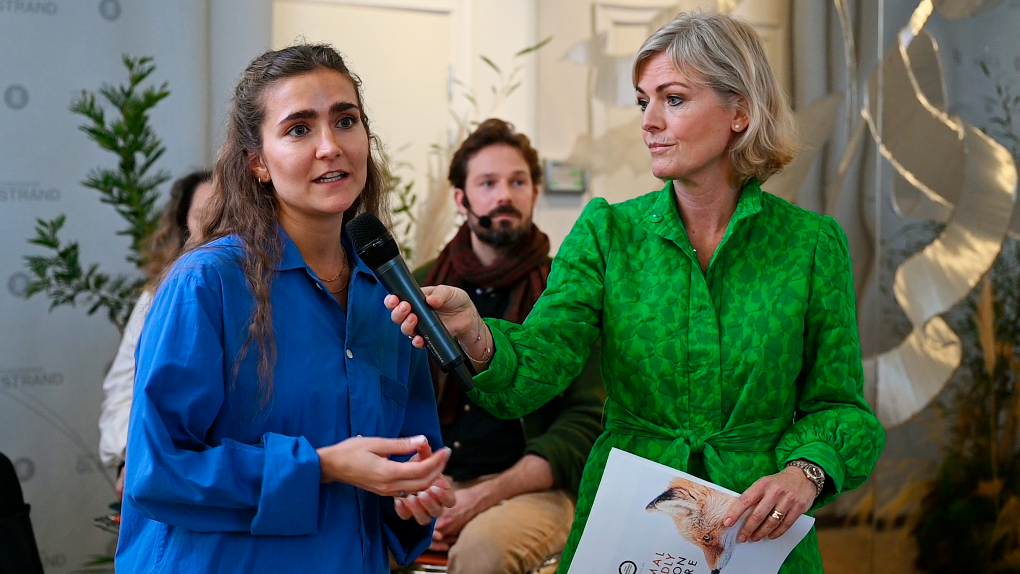 "Med forbud mod skind og fjer fra vilde dyr, går CPH Fashion Week mod en komplet dyrevelfærdspolitik, og det kan vi godt være stolte af. Danmark er nemlig det andet land i verden, hvor forbud mod både pels, skind og fjer, er en naturlig del af bæredygtighedspolitiken", siger Stephanie Kruuse Klausen, der her er filmet under World Animal Protections debat-event under CPH Fashion Week i vinteren 2023 sammen med ordstyrer Lotte Thor.