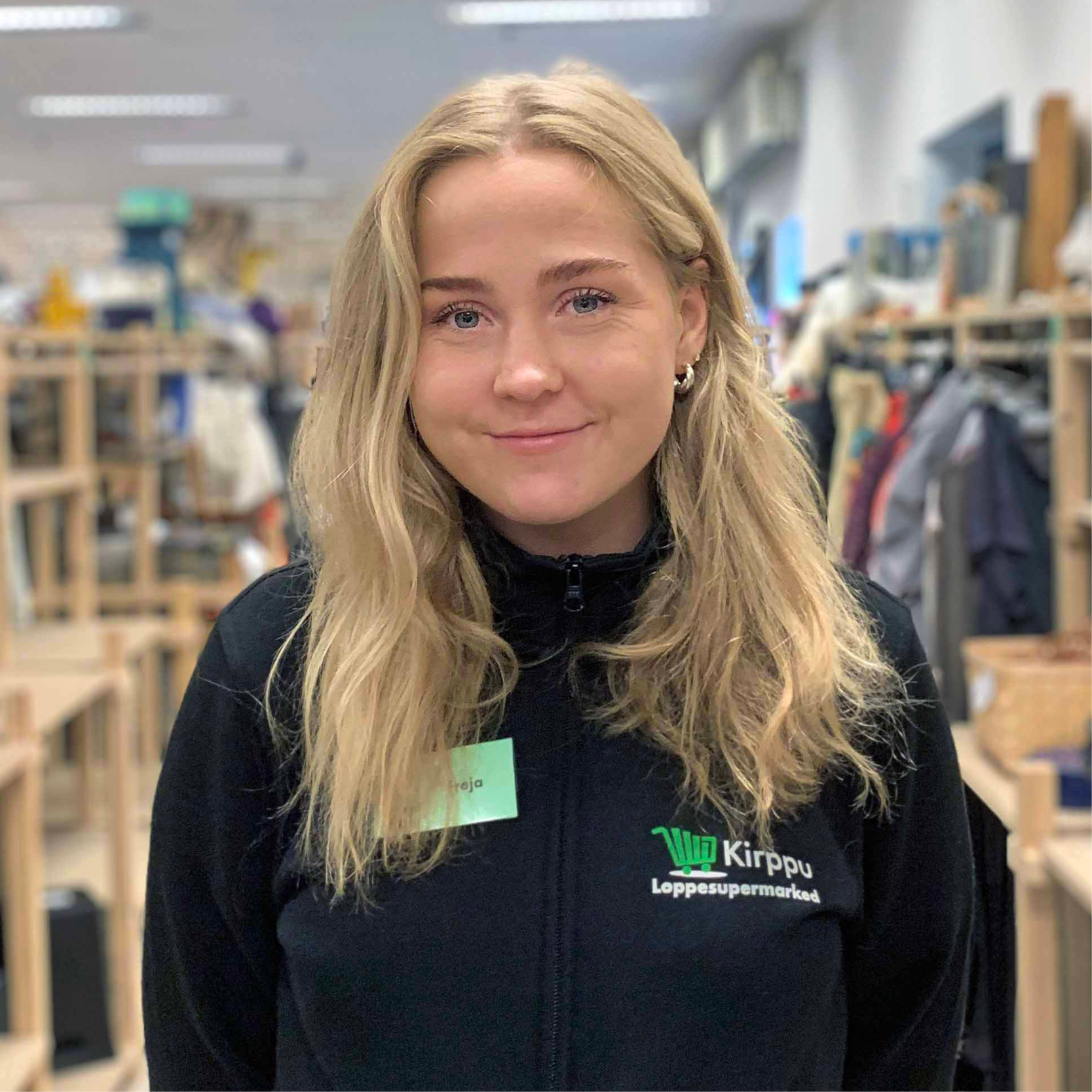 Freja Olsen startede i Kirppu Dalum som butiksassistent i april 2021, men da der skulle findes en ny butikschef i 2022, så hun det som en fantastisk mulighed for noget mere ansvar i den butik, som hun elskede at være i. Som butikschef fik hun nu også et bedre indblik i hverdagen og den positive udvikling, som butikken har været igennem de sidste år: