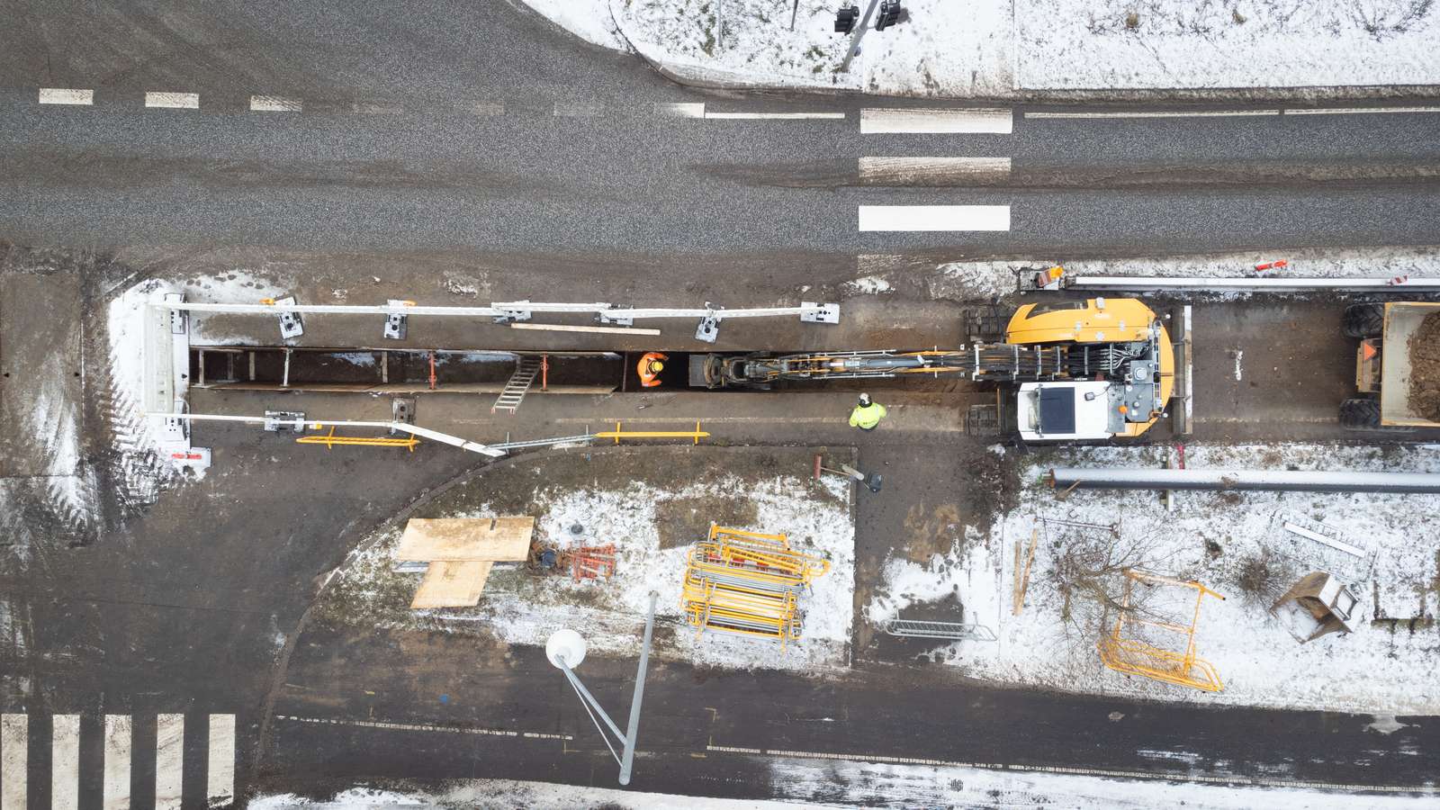Selvom projektet i store træk kører planmæssigt – 214 stik og syv km hovedledning er allerede på plads – er arbejdet ikke helt upåvirket af, at det pludselig gik hen og blev rigtig vinter i Danmark. Ud af 43 anlægsarbejdere har de ti været hjemsendte siden nytår, fordi arbejdet med at lave stik ind til huse og butikker ikke lader sig gøre med et tilfredsstillende resultat i sne og frost.