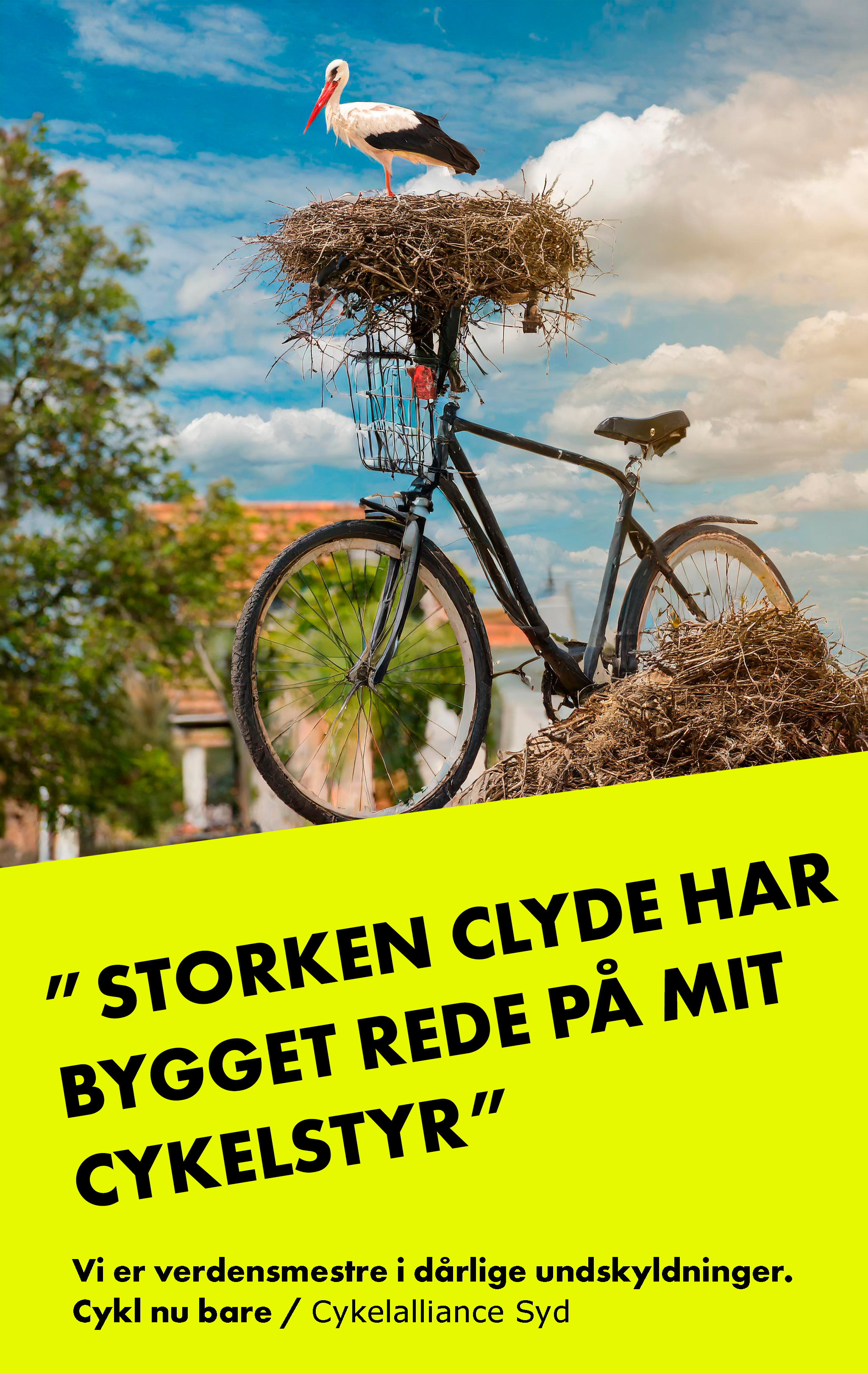 I kampagnen, der har fået en lokal vinkel i Tønder, får både storken Clyde, Vidåen og en vildfaren ko skylden for at lade cyklen stå. Det sker gennem plakater og skilte, der sættes op på parkeringspladser, og hvor folk færdes rundt om i Tønder Kommune.
