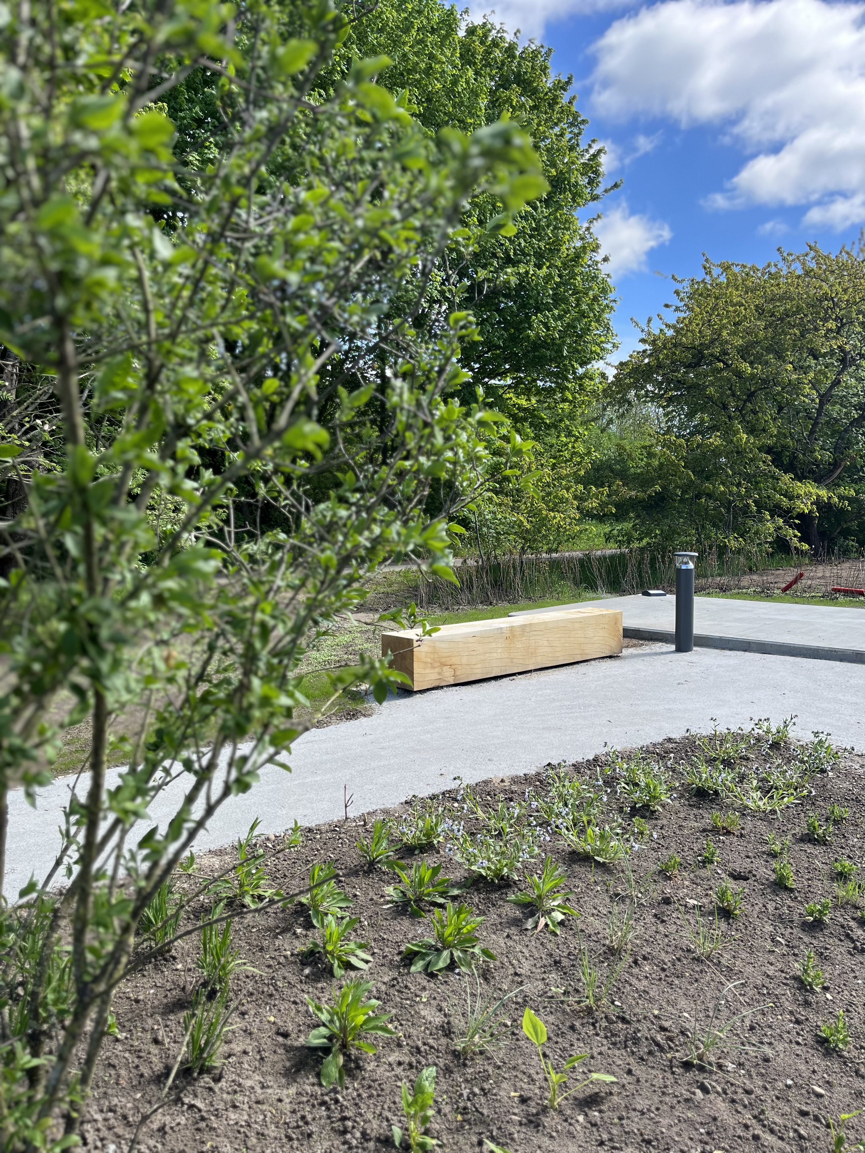 Ud over at give ro til at tænke er Omtankestationen er også et bæredygtigt projekt. Der er brugt overskudsjord fra etableringen af ladestationen til at skabe et indbydende og varieret landskab, der passer til omgivelserne. Beplantningen er nøje udvalgt for at tiltrække fugle og bier, så biodiversitet i området styrkes.