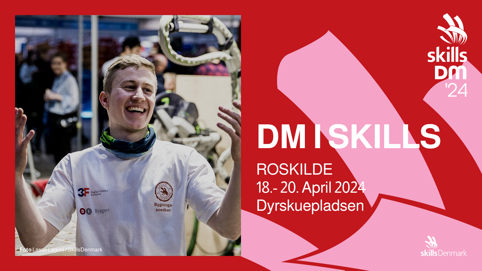 DM i Skills 2024 åbner torsdag den 18. april kl. 8.00. I år er det Roskilde, der byder velkommen til tre begivenhedsrige dage på Dyrskuepladsen, hvor landets 280 dygtigste unge talenter dyster om at blive Danmarksmester i deres fag.